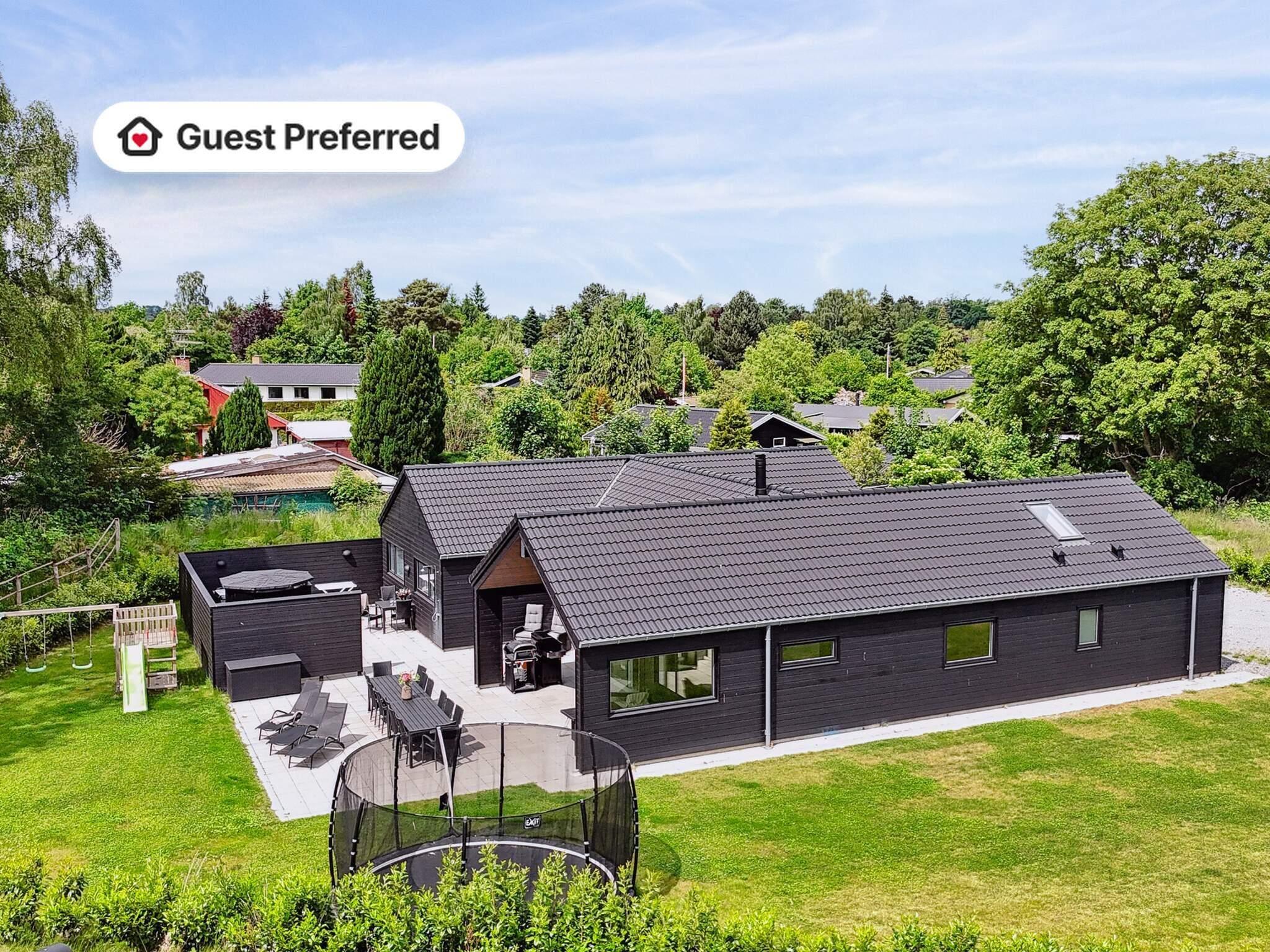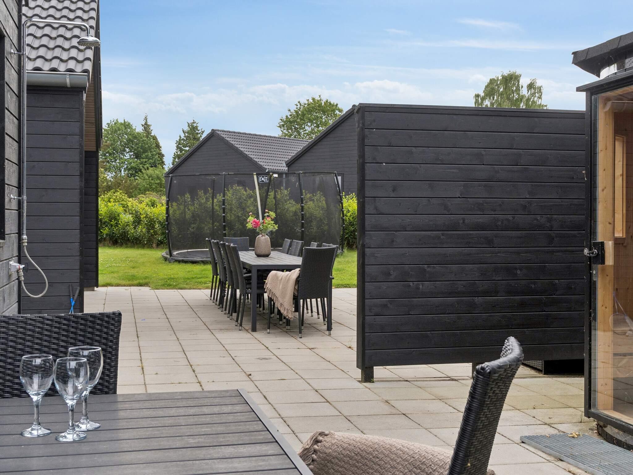 Udendørs er der rig mulighed for at nyde sommeren på den store, delvist overdækkede terrasse. Du kan tænde op i grillen og nyde velsmagende udendørs middage, mens børnene leger i haven, på trampolinen eller i legetårnet.