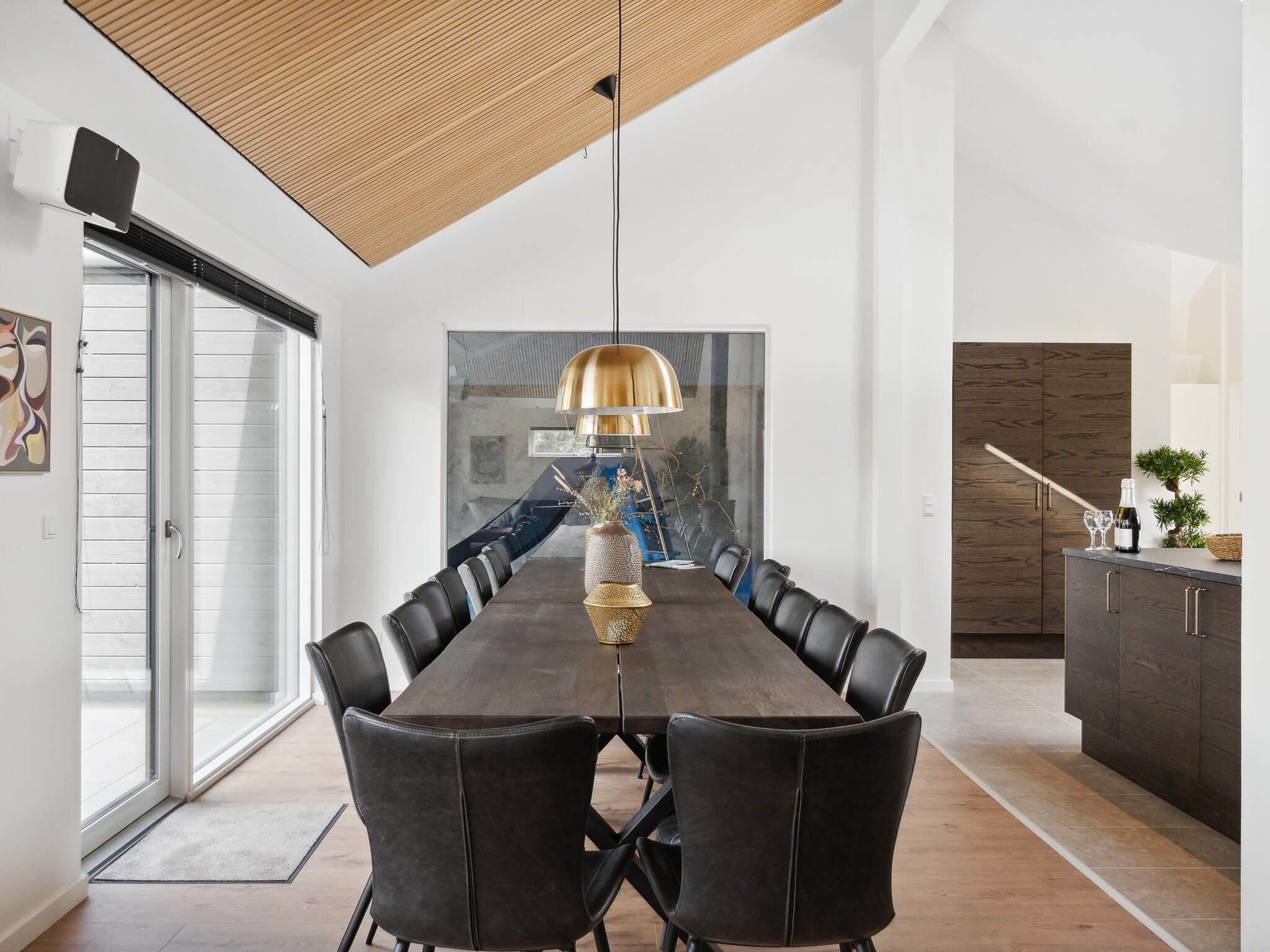 Det store, lyse køkken-alrum er husets naturlige samlingssted, hvor du kan lave mad til alle i det veludstyrede køkken. Der er også plads til, at alle kan samles om spisebordet til måltider eller til en omgang brætspil og hygge.