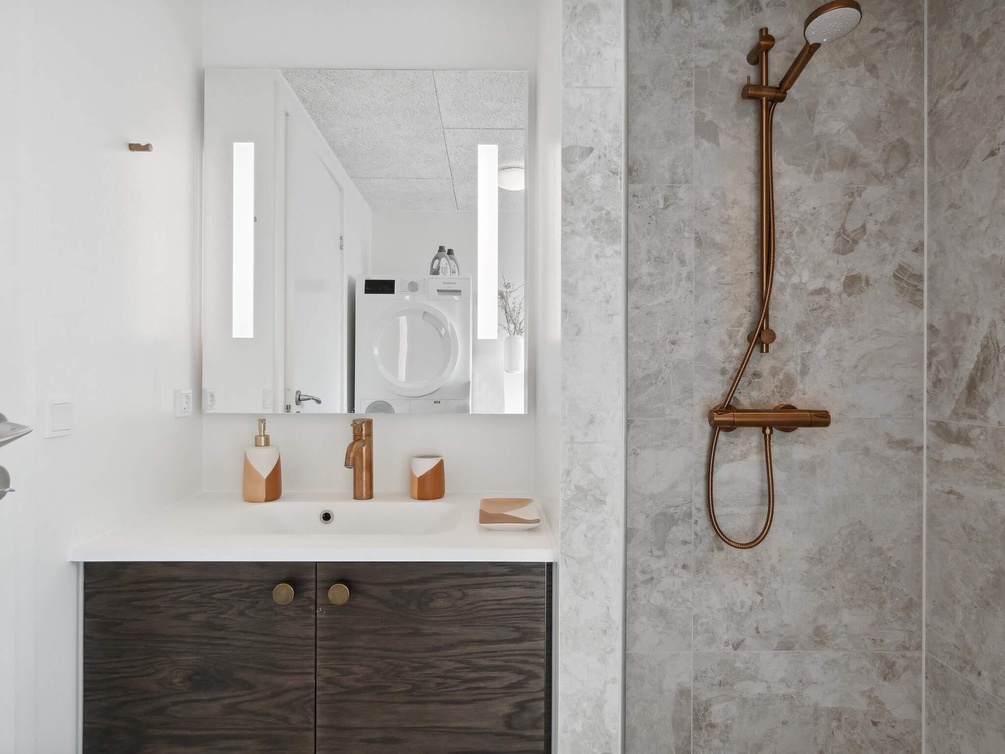 Bad/wc: Vaskemask., tørretumbler, wc, håndvask, bruser