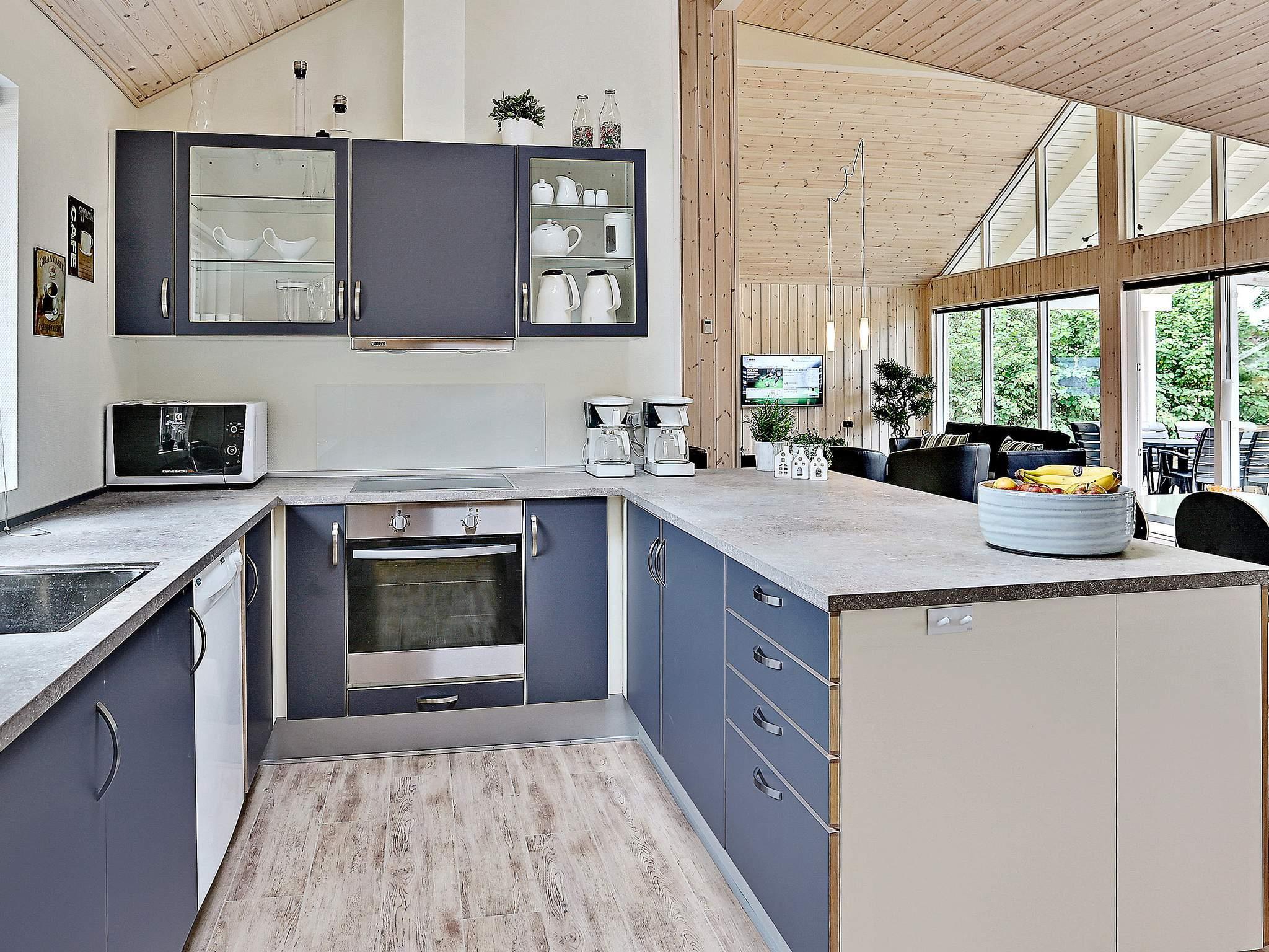 Opholdsarealet består af stilfuldt indrettet køkken med langt spisebord, sofaafdeling tæt på brændeovn og smart-tv med PlayStation 3. Huset er indrettet med fokus på handicap-, ældre- og børnevenlighed. Der er 2 barnesenge, puslepude, babybadekar og fodskamler. Dørene er bredere end normalt, der er ingen dørtrin indvendigt og belægning er hævet ved hoveddør og terrassedøre. To af husets soveværelser er større end normalt, så der er adgang for kørestol, og i det ene er der regulerbar plejeseng. Det ene badeværelse er ekstra stort med plads til badeleje /badestol og med armstøtter til toilet. I poolafdelingen er der rumdækkende lift, således at der kan liftes mellem pool, spabad, badeleje og kørestol. Indkørsel, terrasser og stier er med kørestolsvenlig belægning, og der er ingen niveau-overgang til græsplænen.