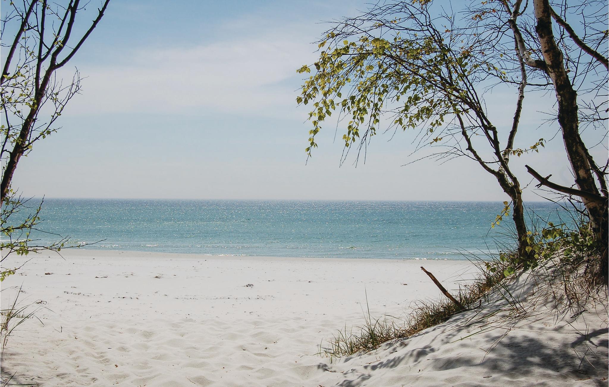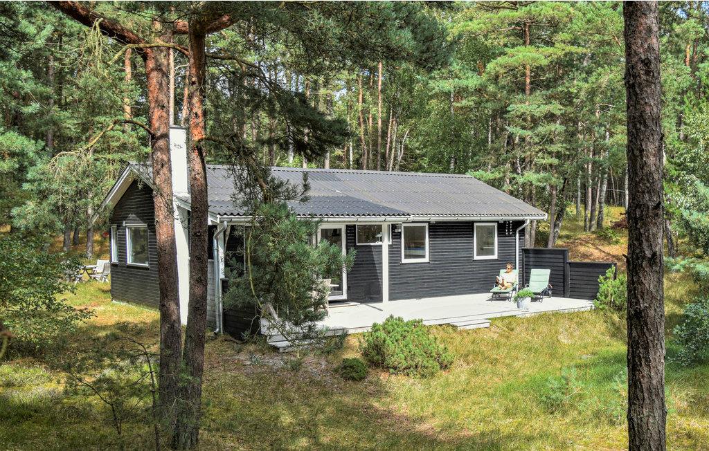 Hyggeligt træsommerhus nær Dueoddes strand med skøn natur og moderne faciliteter til en afslappende ferie.