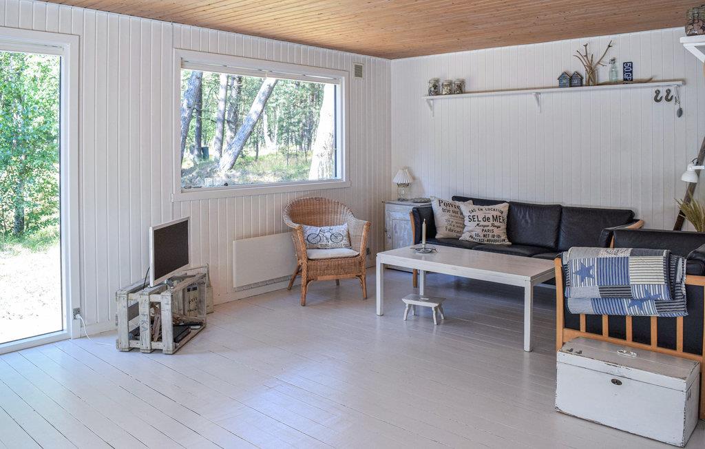 Velkommen til et flot og indbydende træsommerhus med lyse trægulve og en rar stemning overalt i huset. Dette nydelige sommerhus ligger i et populært område med store naturgrunde og smuk natur. Begynd dagene med en kop kaffe i den skønne spisekrog, hvor I kan kigge ud på naturgrunden med høje fyrretræer. Tænd op i brændeovnen på en kølig dag og sæt jer med en god bog eller find sammen om et brætspil. Fra stuen har I udgang til en skøn træterrasse, hvor I virkelig kan nyde ferien i rolige omgivelser i de nydelige havemøbler.