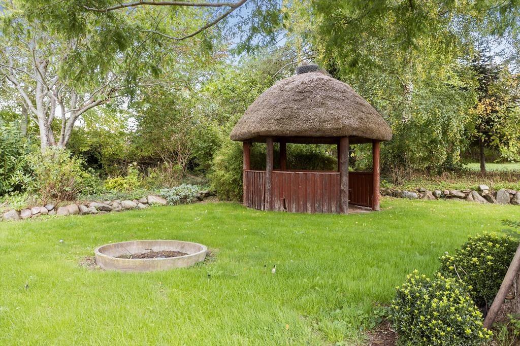 Udendørs venter en stor, frodig have, hvor I kan lade tiden stå stille og nyde roen. Haven byder på både bålplads og en grillhytte, som er det perfekte sted til udendørs madlavning, hvor du kan grille lækre retter i al slags vejr. Lad børnene lege og udforske haven, mens I slapper af med en bog i en liggestol eller forbereder aftensmaden over bålet. Aftenerne kan I bruge på at sidde omkring bålet og nyde den stjerneklare himmel, mens I fortæller historier og laver snobrød. Her er masser af plads til både leg og afslapning, og de forskellige udendørsområder gør det nemt at finde en solrig plet eller en skyggefuld krog, alt efter hvad I foretrækker.