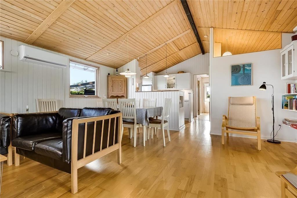 Træd ind i dette stemningsfyldte sommerhus, hvor hvert hjørne emmer af ro og hygge. Det smukke køkken/alrum åbner dørene til en verden af varme og samvær, hvor brændeovnens knitrende og familiens latter blander sig harmonisk.