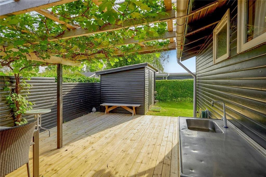 Den åbne og overdækkede terrasse er indrettet med behagelige havemøbler, liggestole og parasol, hvor I kan nyde sommerens varme stråler. Lad jer omfavne af hyggen og stemningen, mens I skaber minder og deler gode øjeblikke under åben himmel.