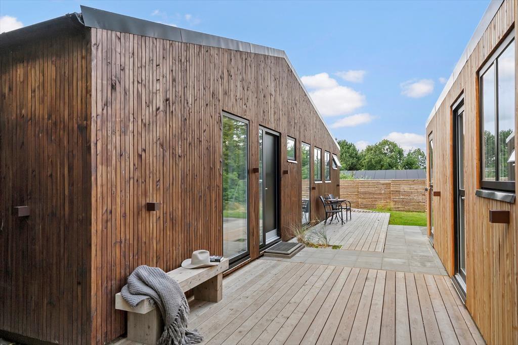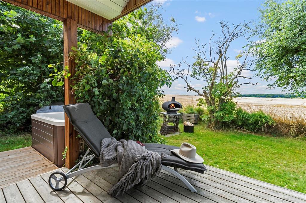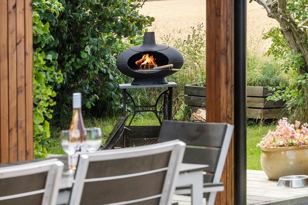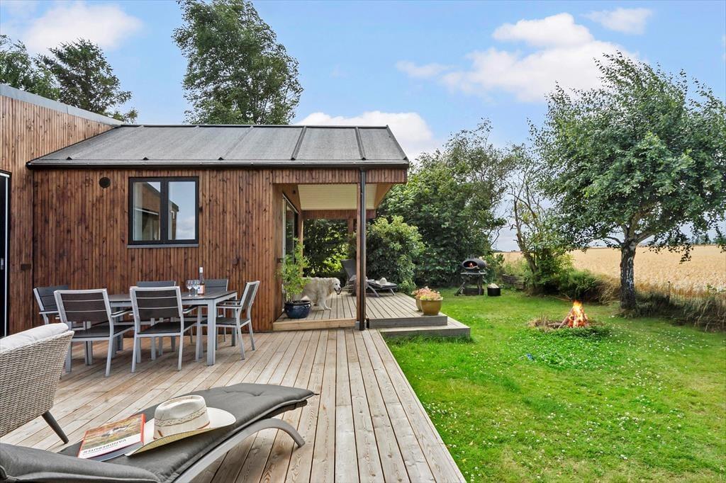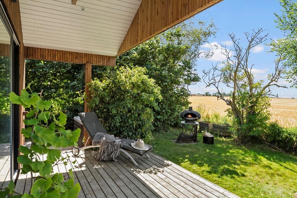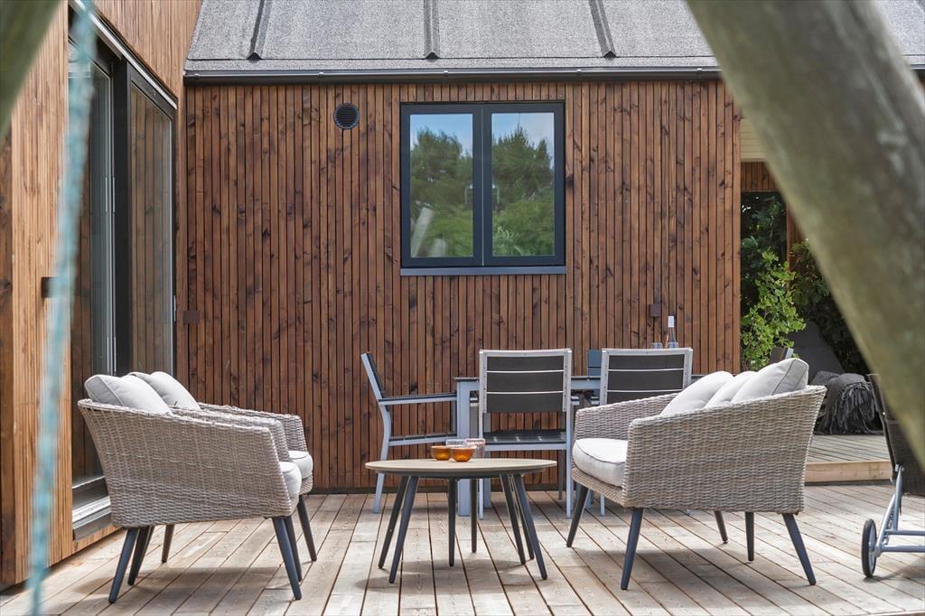 Mulighederne for at opholde sig ude under sit ophold er store. Rundt om huset er der flot træterrasse med fine havemøbler. Det vil være oplagt at tilberede flere af dagens måltider på husets gas grill og nyde dem på terrassen, når vejret tillader det. Her er der mange muligheder for at finde et spot til afslapning, læsning af en god bog, eller måske bare en ferie-middagslur.