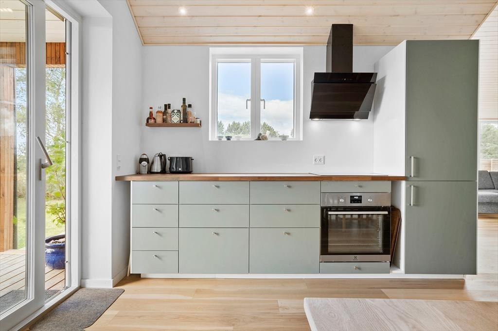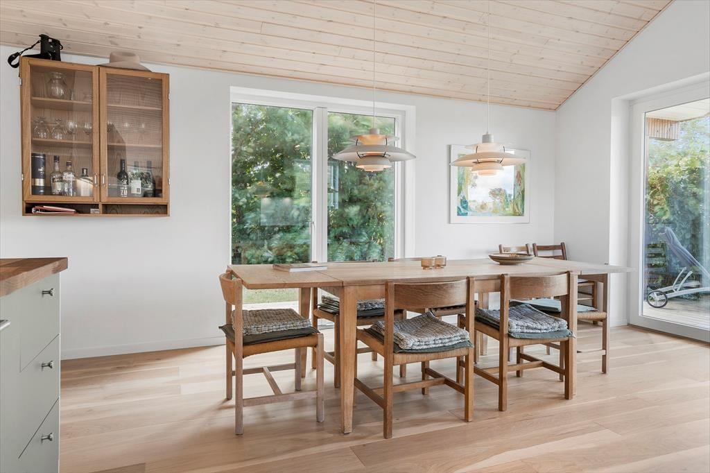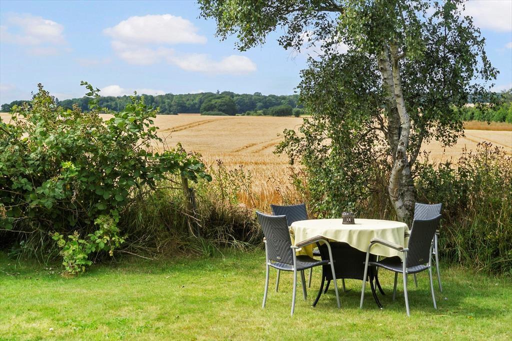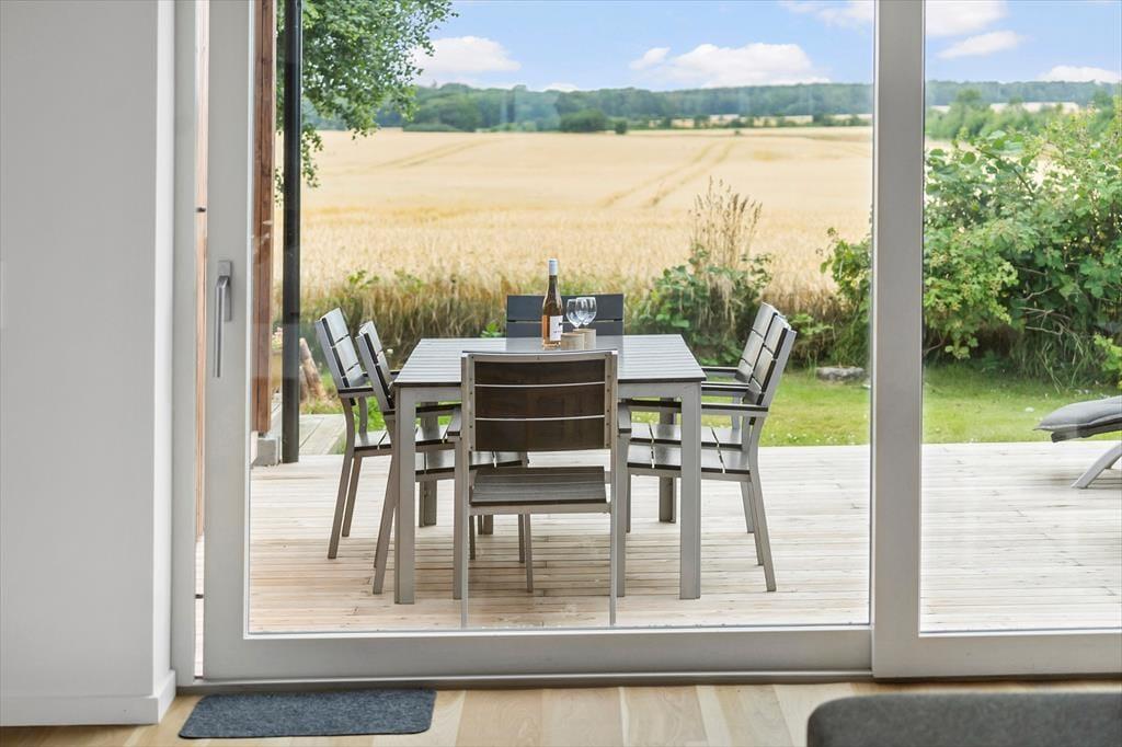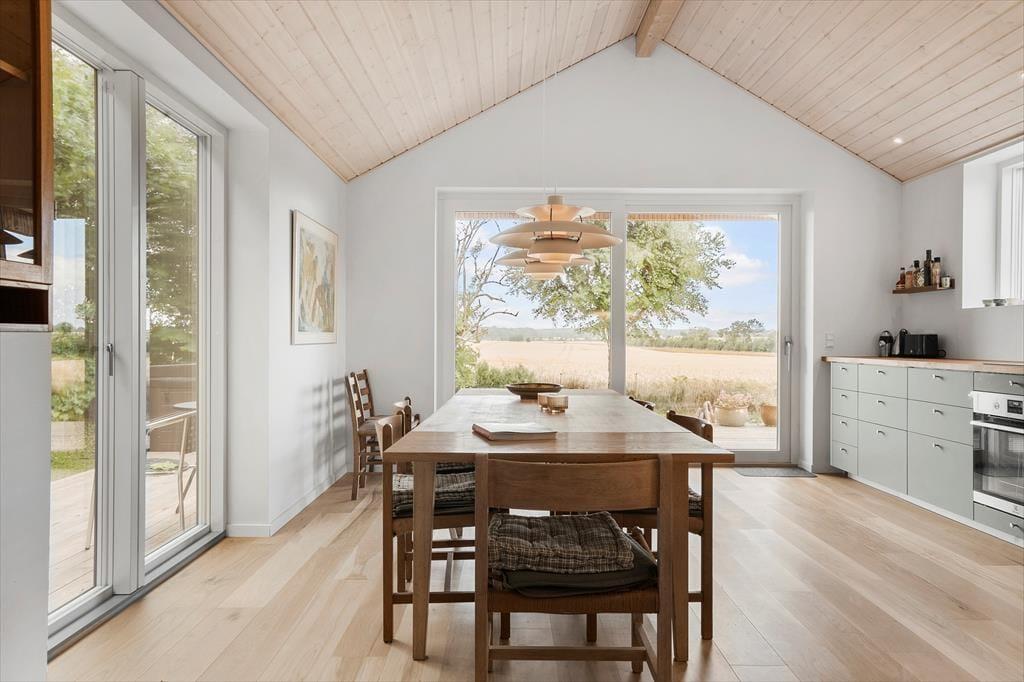 Central placeret i huset er det store køkken/alrum, hvor køkkenet indeholder alt, hvad I har brug for under jeres ophold af moderne faciliteter til lækker madlavning. Her kan I nyde lysindfaldet og den fine udsigt ud over markerne.
