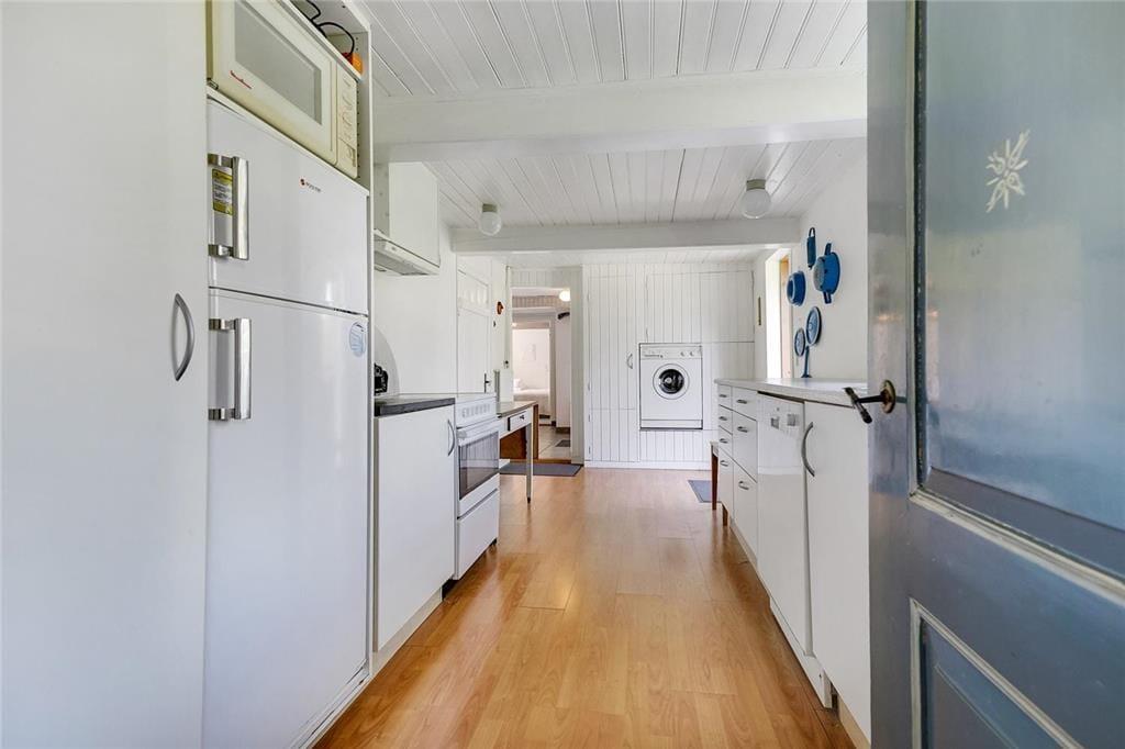 Dette charmerende hus er med stråtag og her kan man virkelig nyde den friske havluft. Overalt i huset er der sprossede vinduer. Her er et lyst nyere køkken med opvaskemaskine. Sommerhuset har 4 soverum af gode størrelser - her er i alt 5 boxmadrasser. Her er der plads til mange overnattende gæster. I stuen er der brændeovn og mange gode siddepladser til spisning og afslapning. Overalt i huset er der synlige bjælker og de flotte originale døre. Badeværelset er nyt med bruseniche, gulvvarme, vaskemaskine og tørretumbler. Sommerhuset er børnevenligt og med barneseng og barnestol.