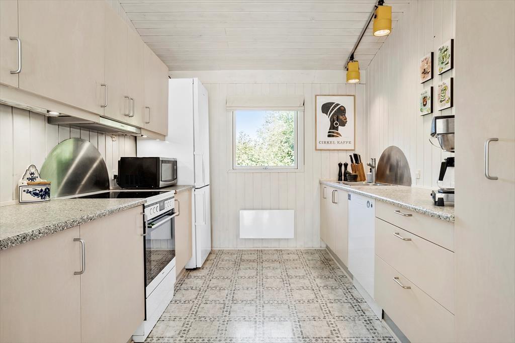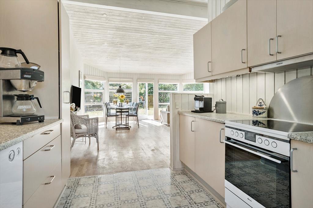 Centralt placeret i huset er der køkken/alrum, hvor køkkenet indeholder det I har brug for under jeres ophold, af moderne faciliteter til god madlavning.
