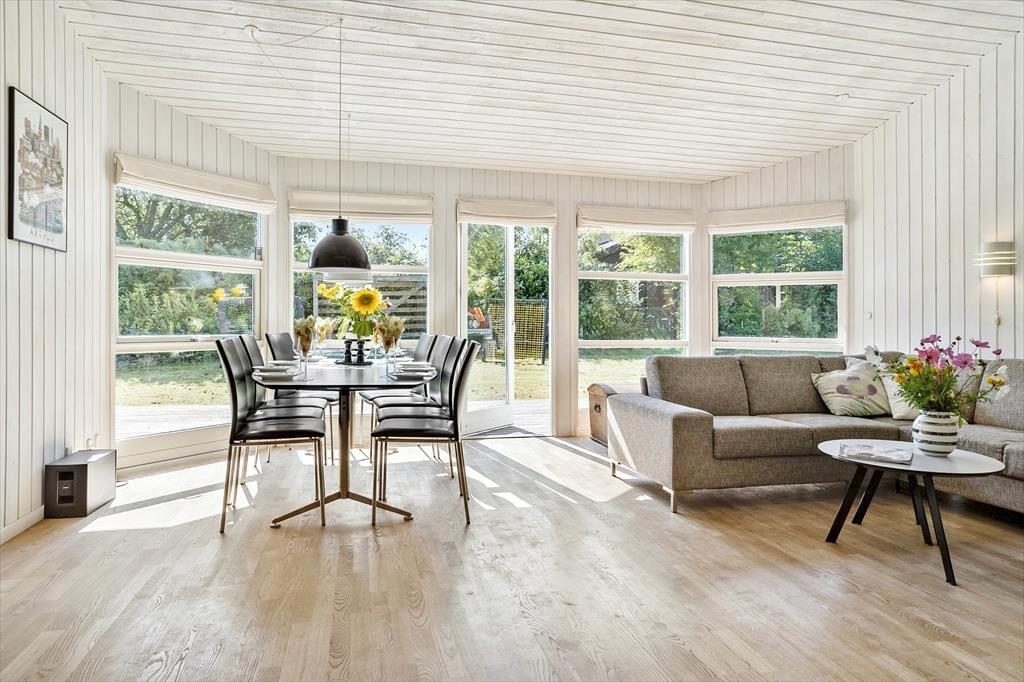 I direkte forbindelse med køkkenet, er der spiseplads og hyggelig sofagruppe, hvor I alle kan samles efter en god dag på stranden og hygge jer med brætspil, puslespil, snak og måske se en film på det store TV, hvor der er mulighed for at streame eget abonnement via huset Chromecast.