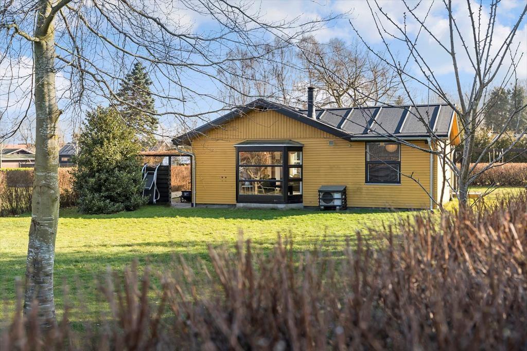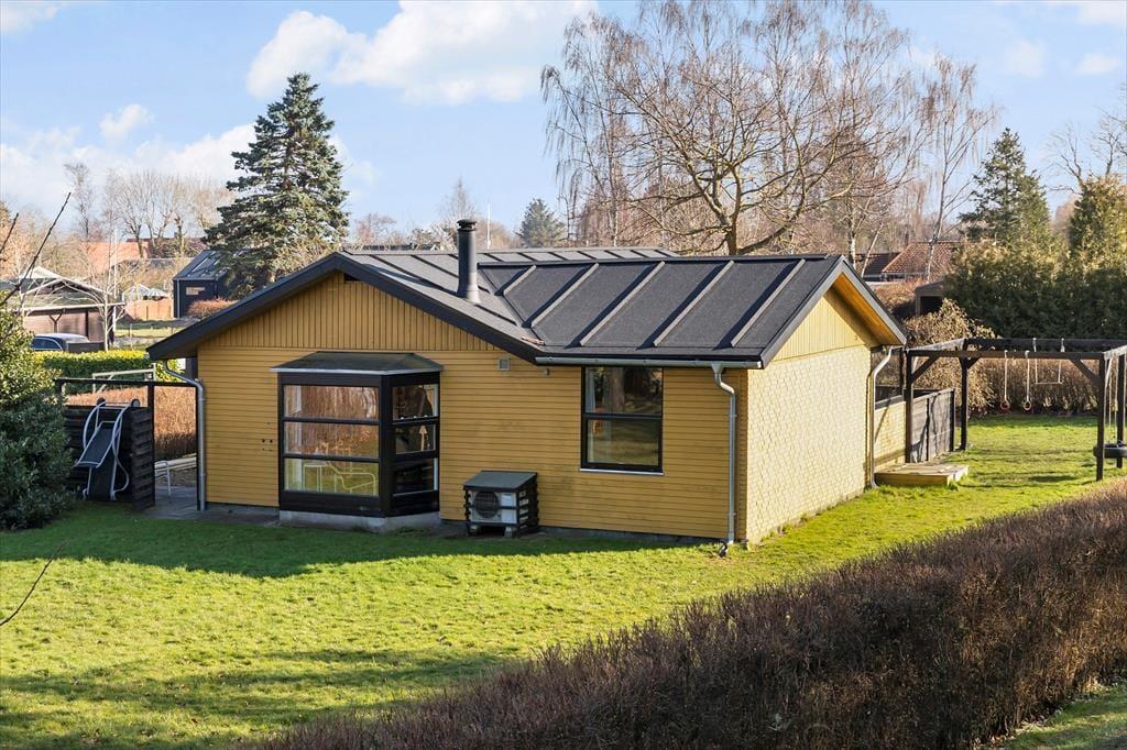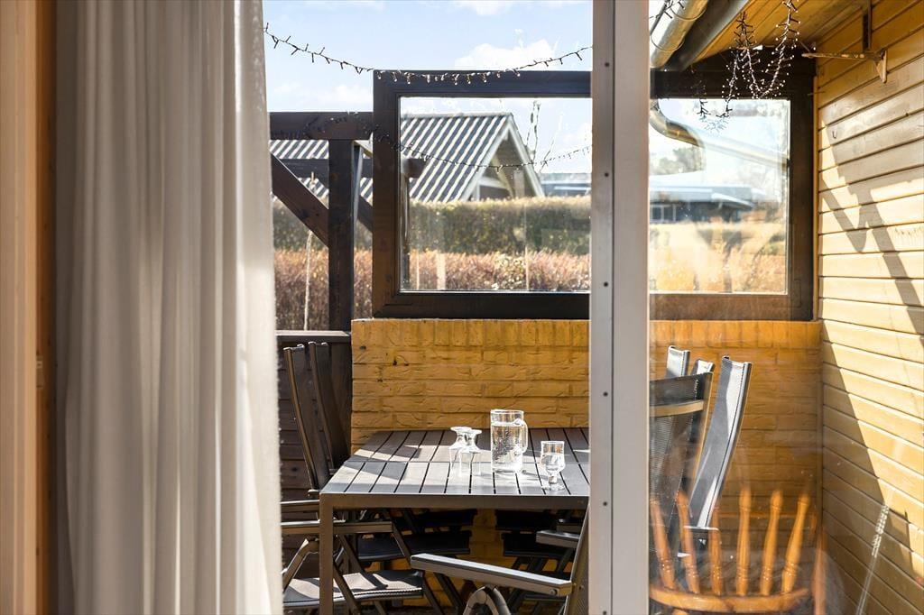 Rigtig dejlig have, som er indhegnet og har gynger og sandkasse samt bålsted. Og så kan man skylle sandet af under den udendørs bruser, som har både varmt og koldt vand. Derudover lukket terrasse med gode havemøbler og grill. Så rigtig velegnet til familier med børn og familiens hund/hunde er også meget velkomne.