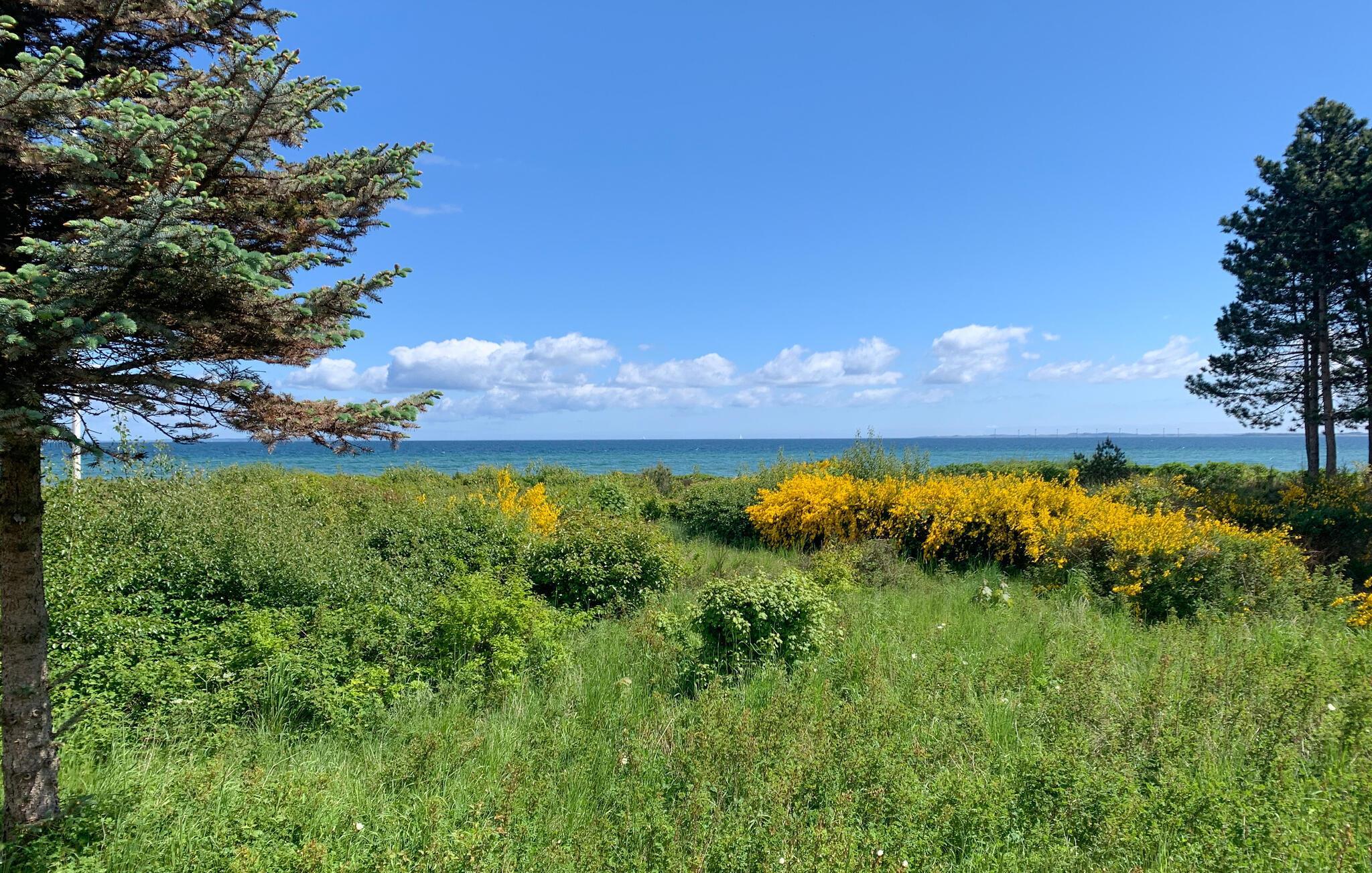Charmerende feriehus ved Dyngby Strand med panoramaudsigt, solrig terrasse og spabad for ren afslapning.