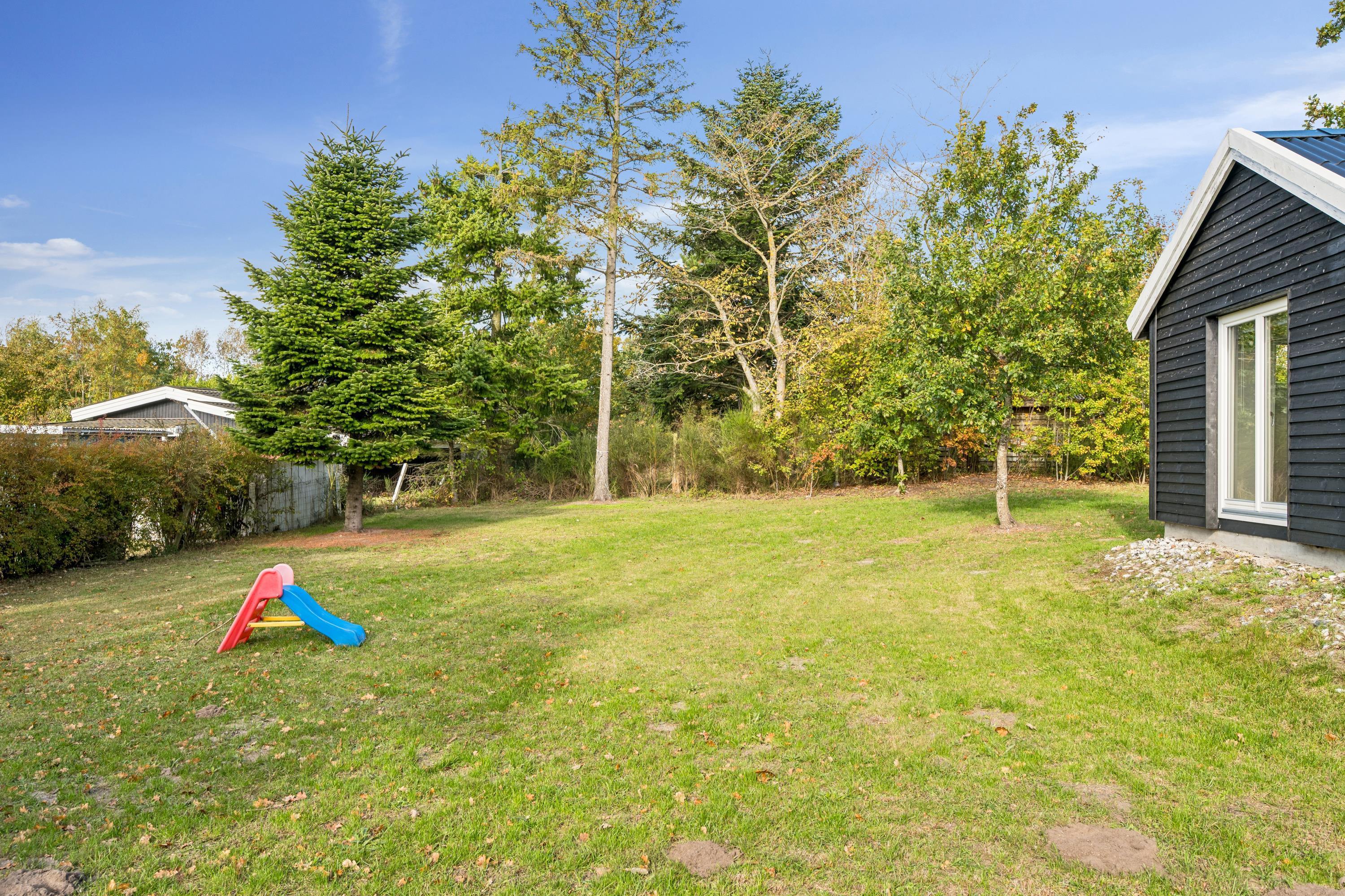 Hyggeligt, velholdt feriehus i Boeslum Bakker nær Ebeltoft, med stor terrasse, sandkasse og tæt på strand og golf.