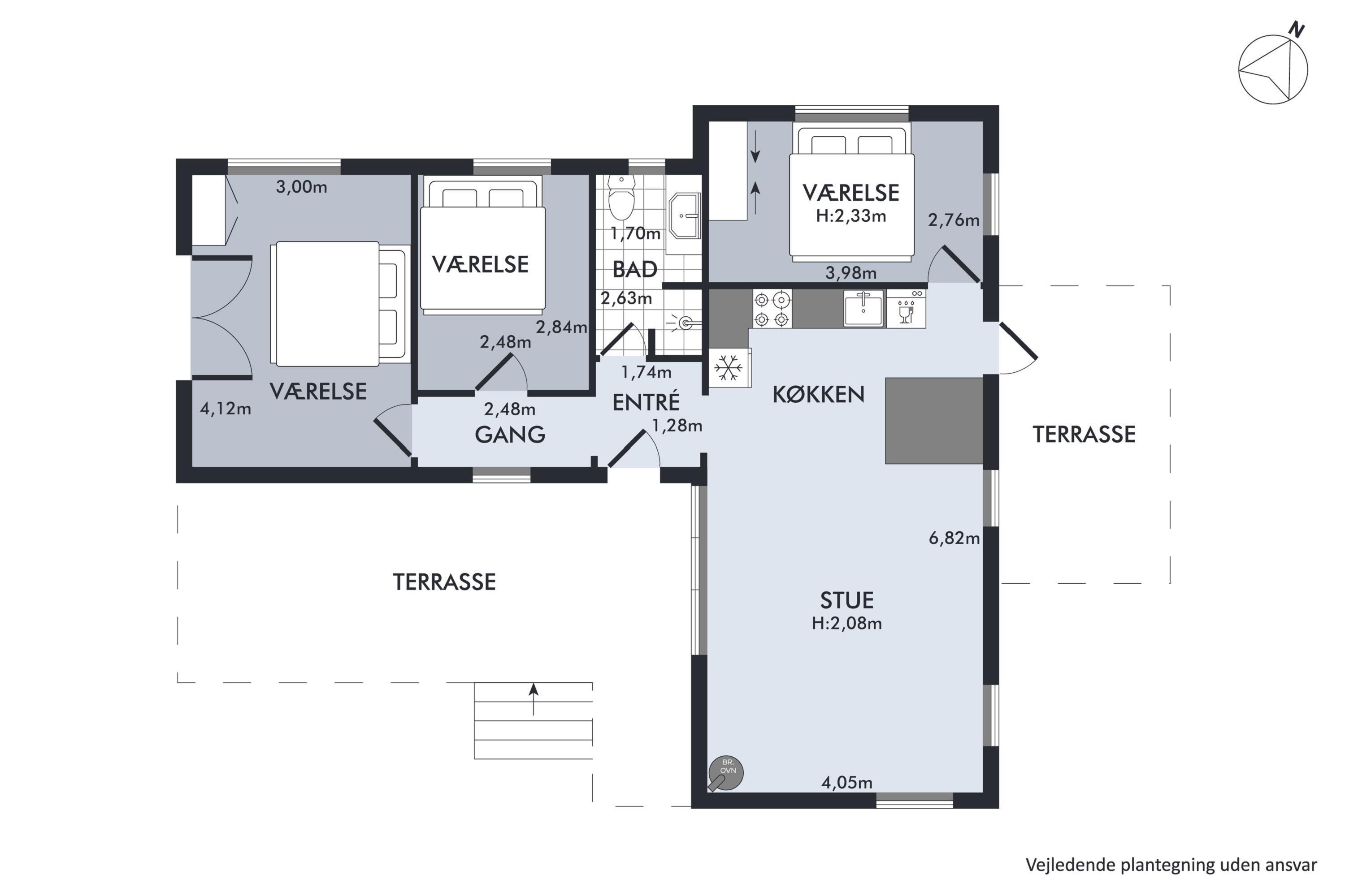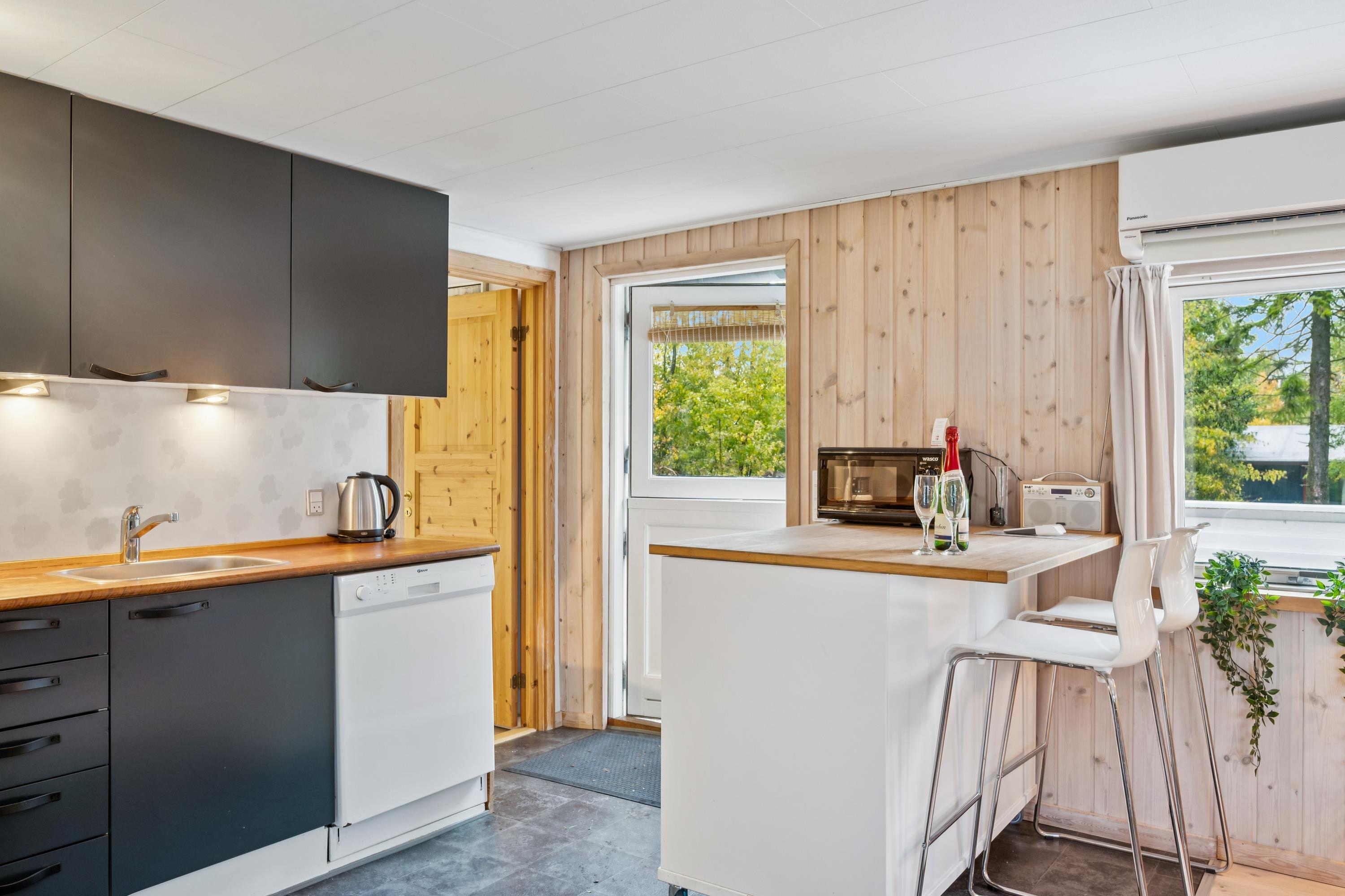 Huset fremstår lyst og indbydende med stor stue i åben forbindelse med køkken og med udgang til terrasse og have. Her er spiseplads til 6 personer, brændeovn samt fjernsyn med danske (inkl. TV2) og tyske kanaler. Nyere køkken med god arbejdsplads og indrettet med keramisk komfur med ovn, køle-/fryseskab og opvaskemaskine. Huset råder over 3 gode soveværelser, 2 med dobbeltseng og 1 med dobbelt sovesofa, i alt 6 sovepladser. Fint og rummeligt badeværelse med bruseniche og gulvvarme. Der er internetadgang.