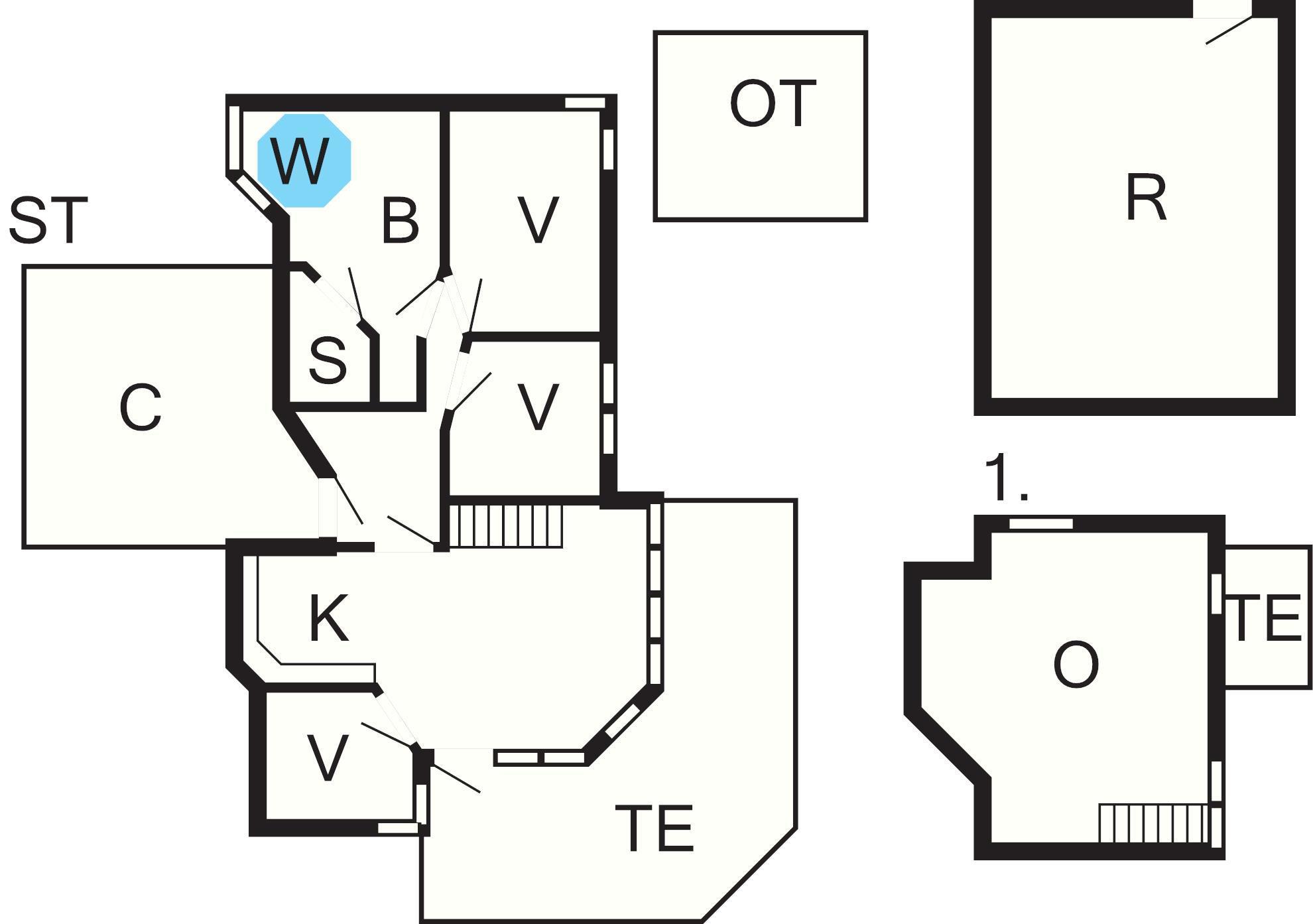 1 Opholdsstue: Brændeovn, stereoanlæg med cd, tv