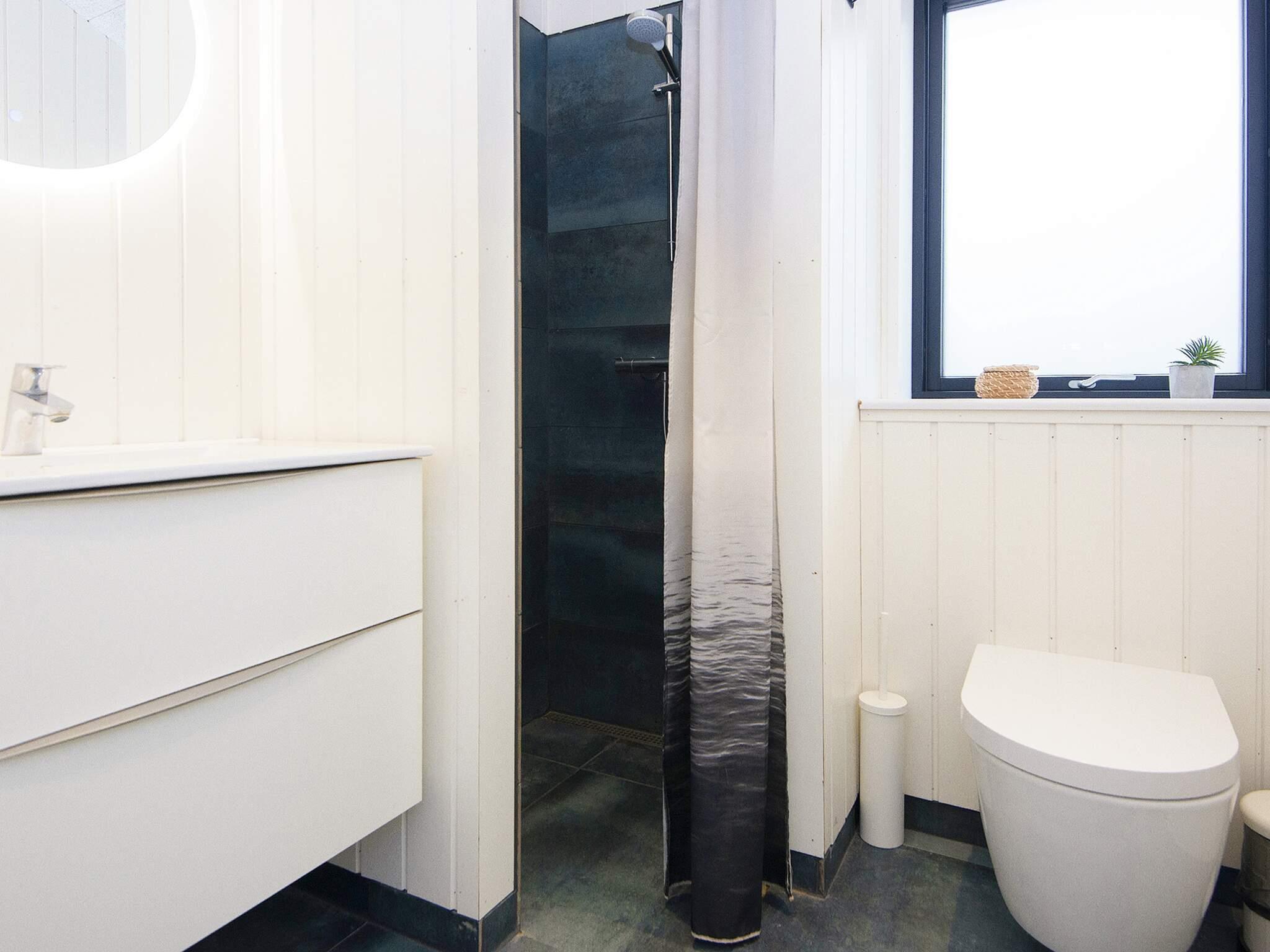 Indenfor er boligen fyldt med lys, hvilket skaber et luftigt og moderne præg. Seks velindrettede soveværelser giver masser af plads til alle, mens to stilfulde badeværelser sikrer komfort og bekvemmelighed. Det ene badeværelse har en beroligende infrarød sauna, et ideelt sted at genoplade efter en svømmetur eller en gåtur langs kysten. Træd direkte herfra ud på terrassen, hvor et udendørs spabad til op til otte personer lover aftener under åben himmel, omgivet af bobler og latter.