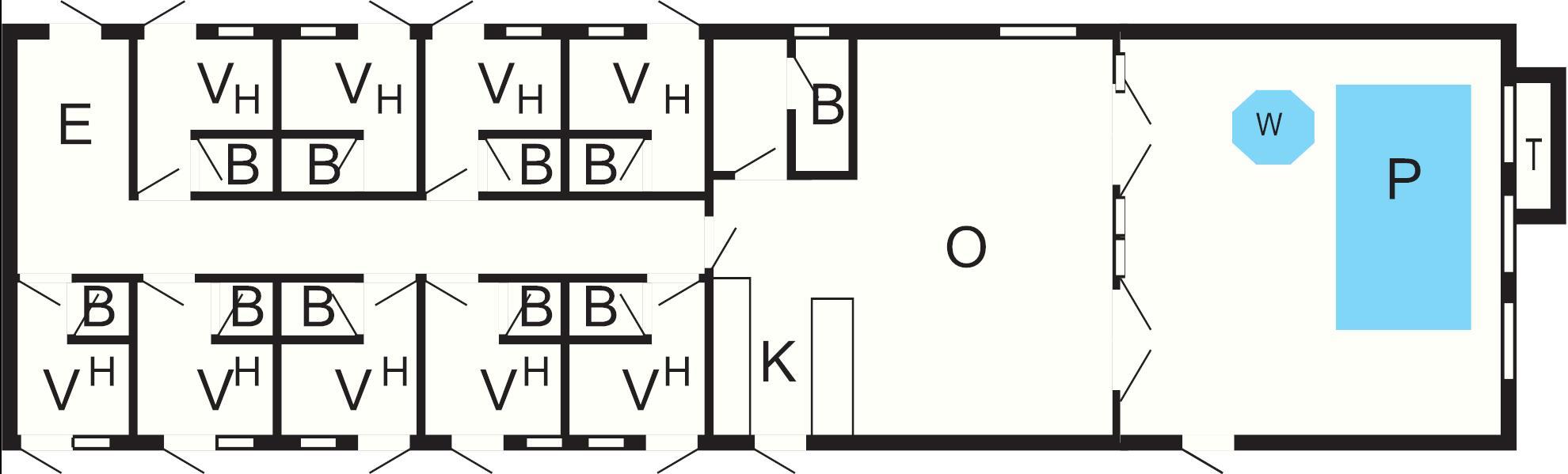9 Soveværelser: (1DS)+(1DS)+(1DS)+(1DS)+(1DS)+(1DS)+(1DS)+(1DS)+(1DS), barneseng