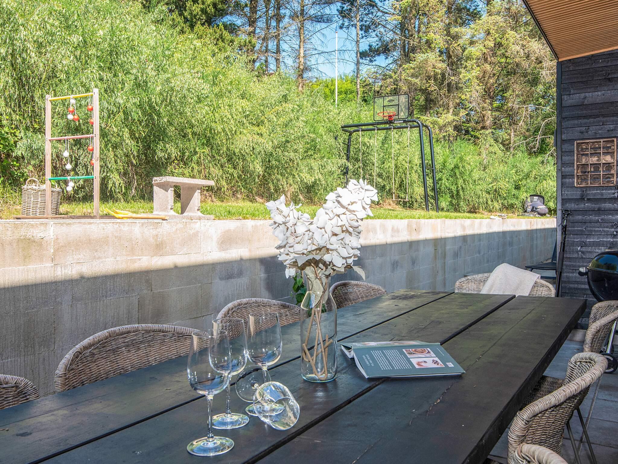 Ejendommen er beliggende på en naturligt skrånende grund, der tilføjer charme og karakter til udendørsarealerne. Gæster med begrænset mobilitet skal dog bemærke, at skråningen kan være en udfordring. Kombinationen af ??indendørs og udendørs rum sikrer, at alle kan finde deres foretrukne måde at slappe af eller forblive aktive på, uanset om det er at nyde et bad i boblebadet, spille spil eller blot nyde det omkringliggende landskab.