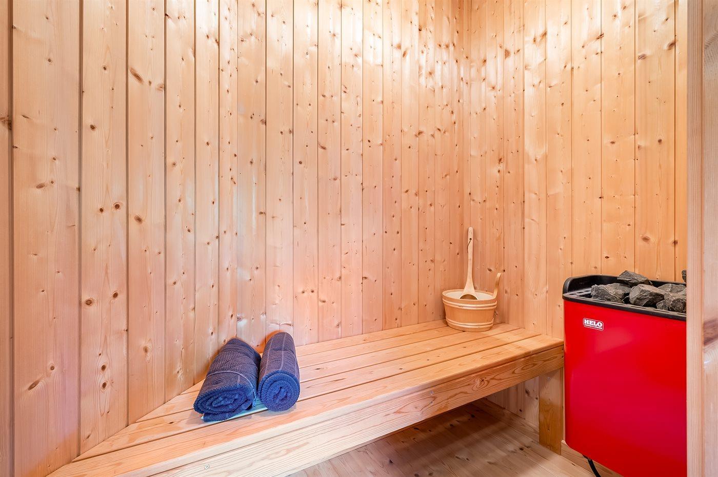 Der er 1 badeværelse med bruseniche og 1 toilet.. Der er gulvvarme på 1 badeværelse. I saunaen er der mulighed for afslapning.