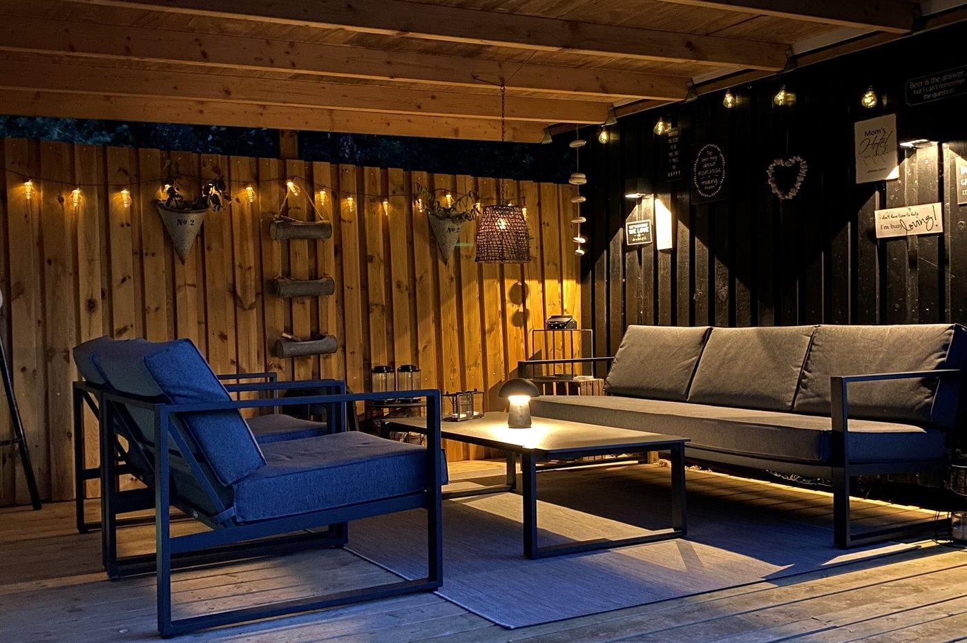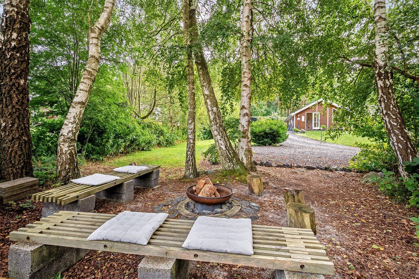 Den skønne have lægger op til masse af leg for hele familien - hyg jer med overnatning i shelter, snobrød på bålstedet, eller hygge på den overdækkede terrasse.