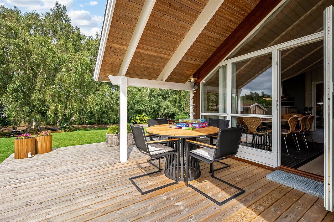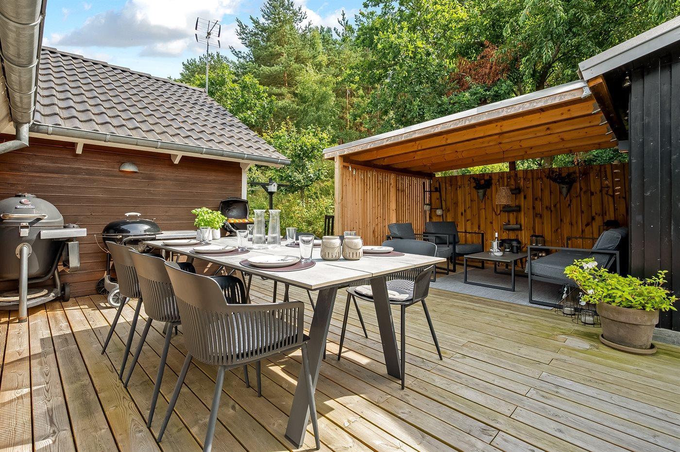 Dette veludstyrede, moderne og pænt møblerede feriehus, befinder sig nær Ebeltoft by i et roligt område, der er helt ideelt for børnefamilier.