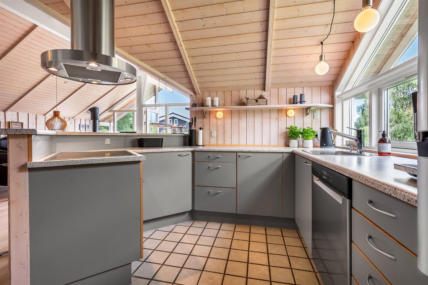 Køkkenet er udstyret med 1 køleskab. Der er 4 induktionskogeplader, varmluftovn, mikrobølgeovn samt opvaskemaskine.