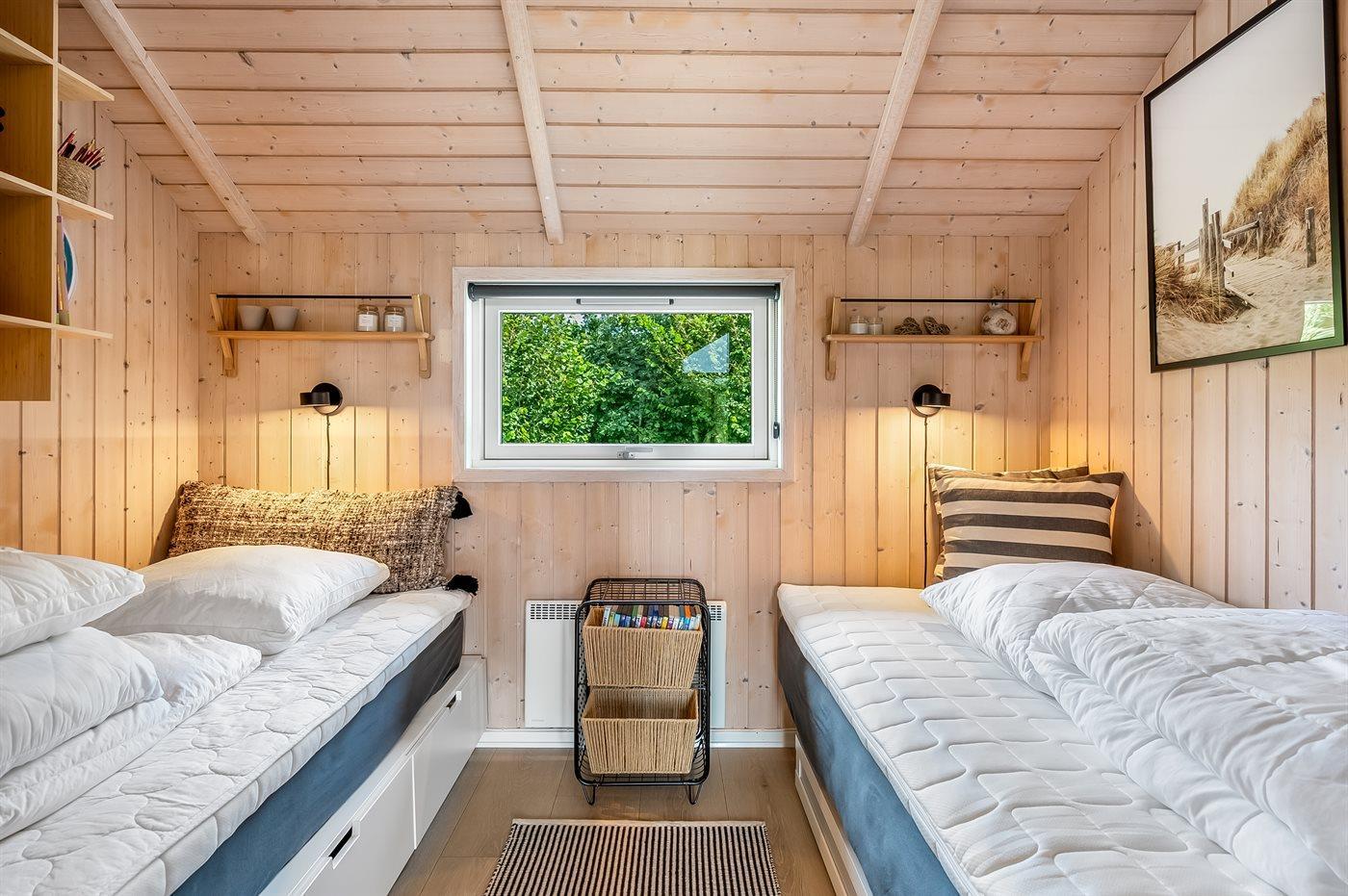 Der er i alt 3 soveværelser. Sovepladserne fordeler sig på: 4 sovepladser i dobbeltsenge. 2 sovepladser i enkeltsenge. Derudover er der 1 stk. barneseng.