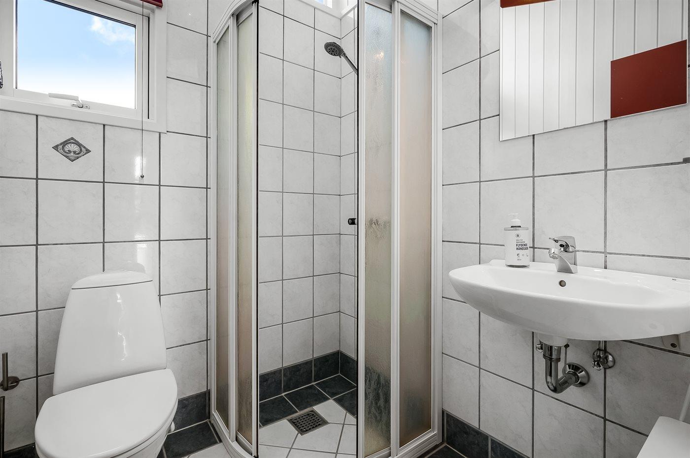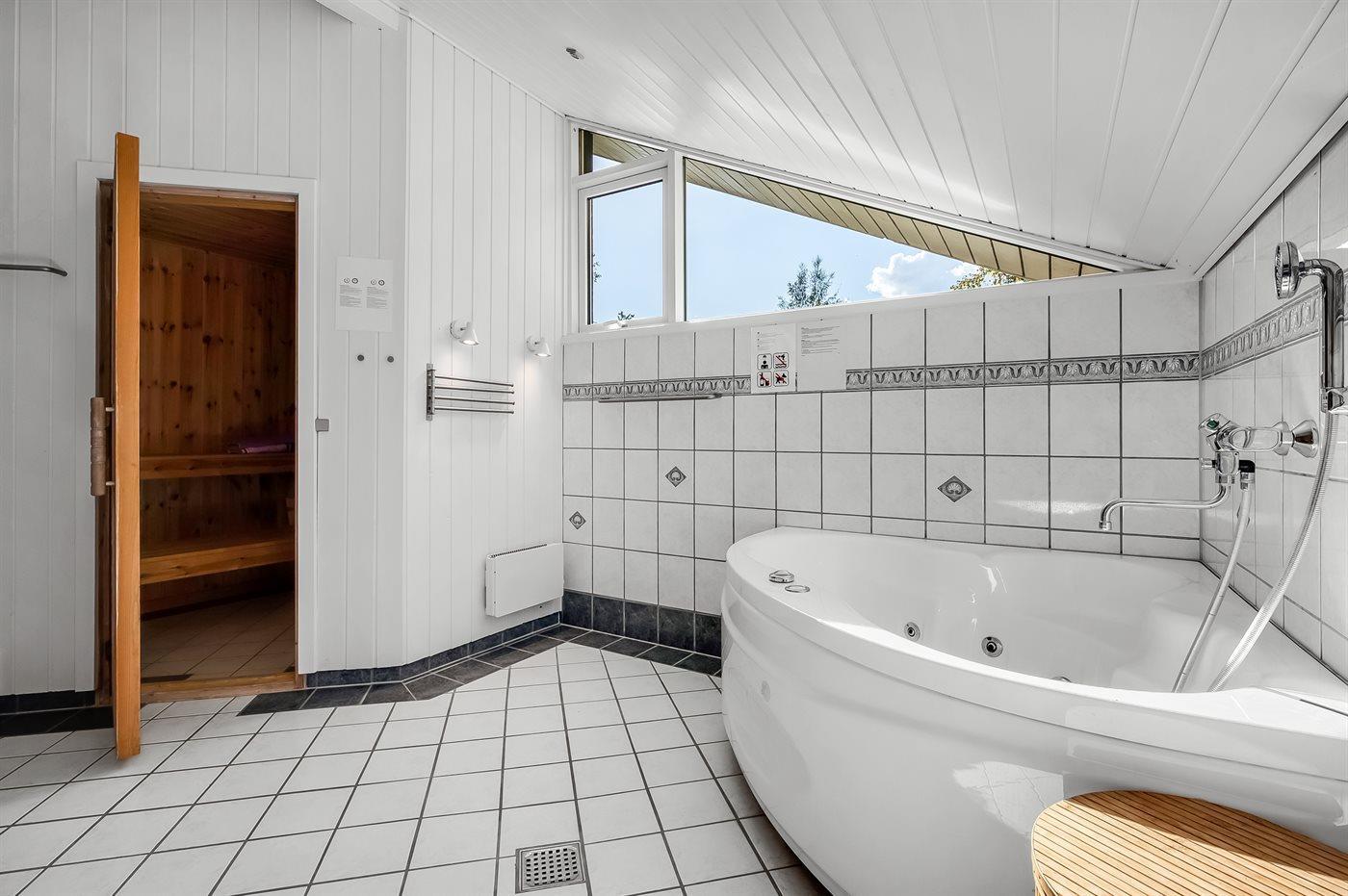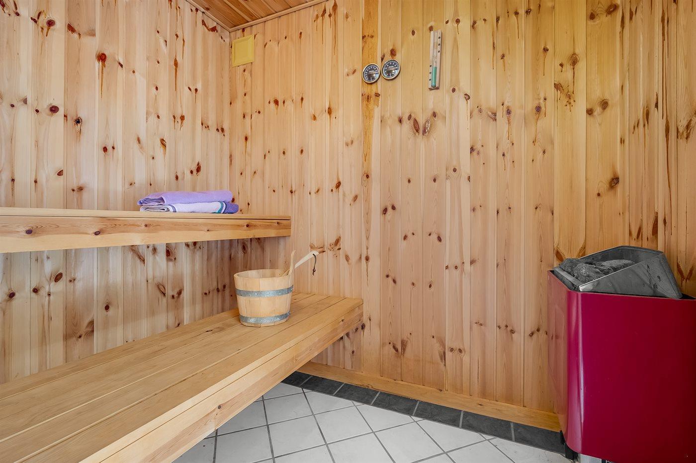 Der er 2 badeværelser med bruseniche og 2 toiletter. Der er gulvvarme på 2 badeværelser. I saunaen er der mulighed for afslapning.