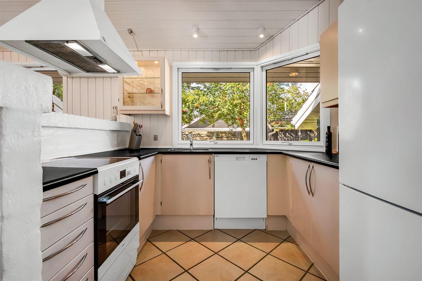 Køkkenet er udstyret med 1 køleskab. Der er 4 keramiske kogeplader, varmluftovn, mikrobølgeovn, Airfryer samt opvaskemaskine.