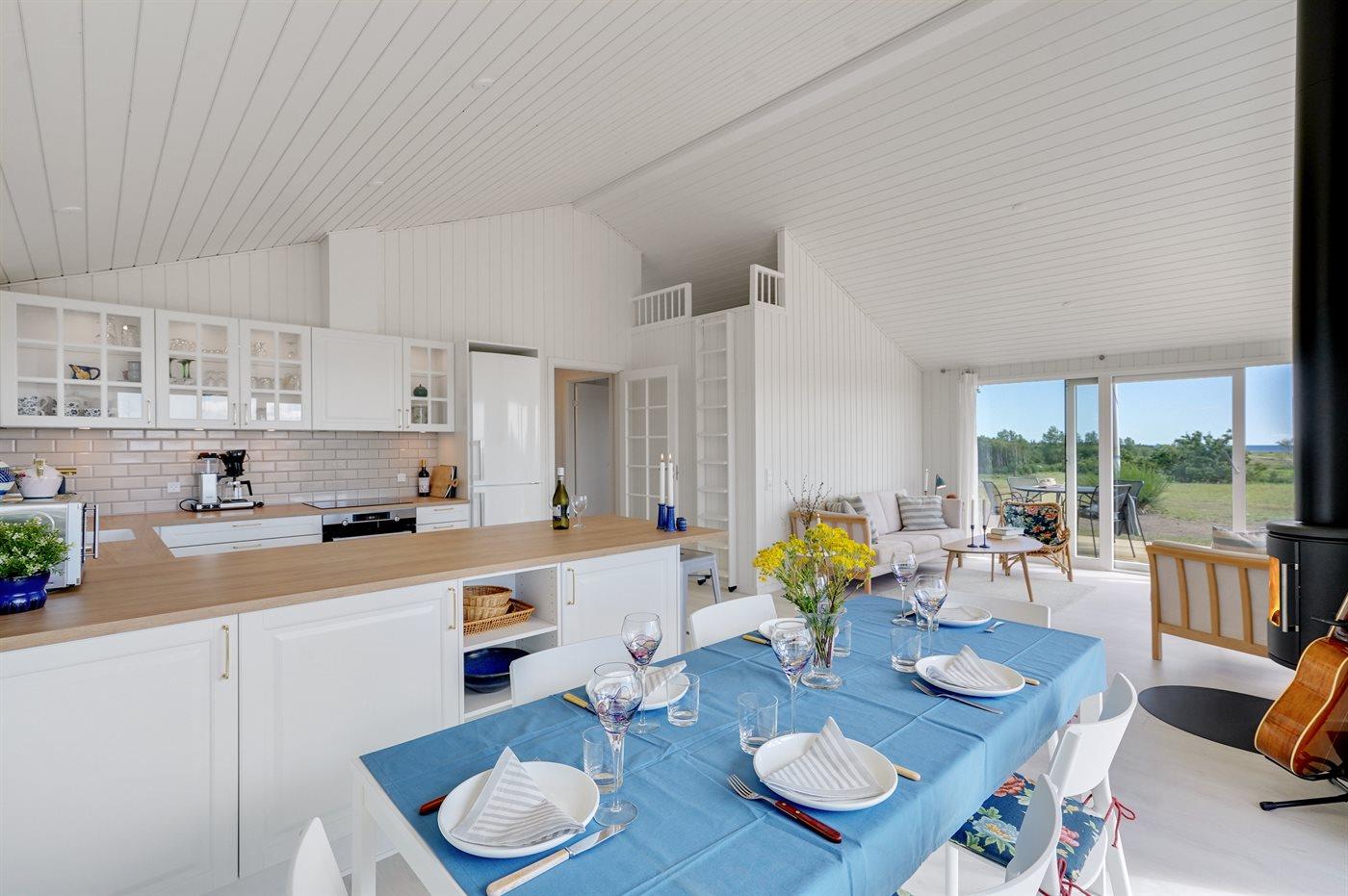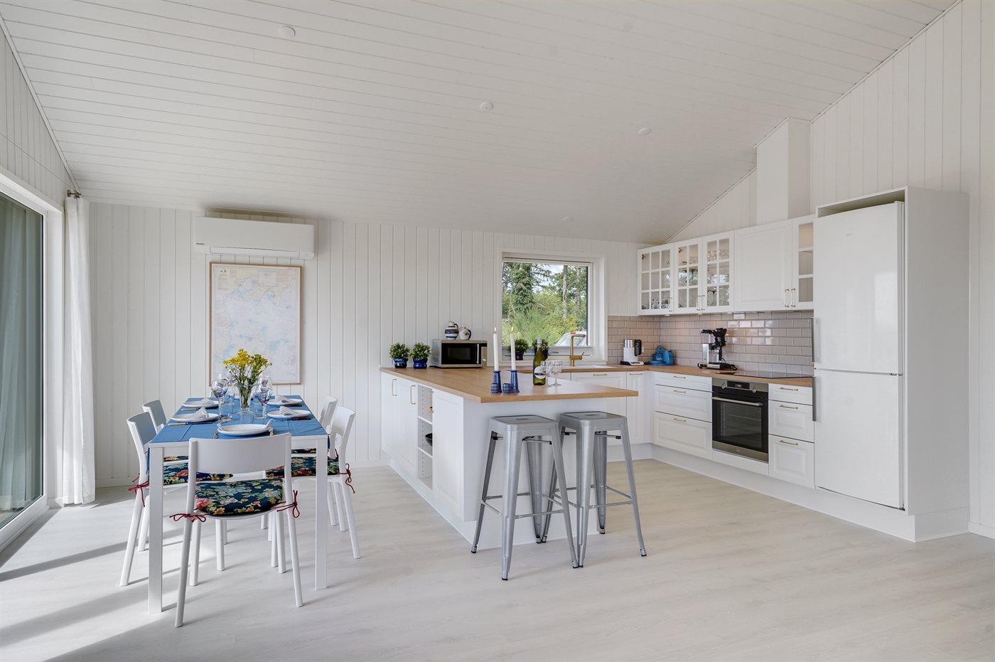 Køkkenet er udstyret med 1 køleskab. Der er 4 induktionskogeplader, varmluftovn, mikrobølgeovn samt opvaskemaskine.
