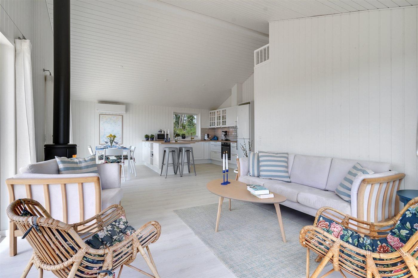 Sommerhuset ligger højt placeret og med en flot udsigt over vandet, som kan nydes i fulde drag fra både den fine terrasse samt inde fra huset. Indvendigt fremstår sommerhuset som det forventes af et nybygget hus og har en god ruminddeling, der passer godt til en familie.