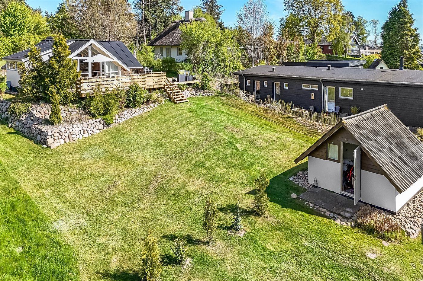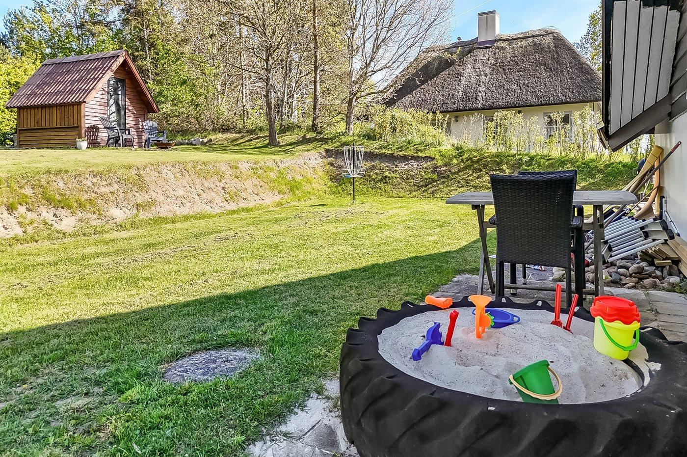Ferieboligen er beliggende på en 1500 m² stor havegrund. naturgrund. Der er 300 m til havet. Nærmeste forretning er beliggende i en afstand af 800 m. Til ferieboligen hører åbent terrasseareal. Gynge. Sandkasse. Legetårn. Bålsted. Grill til rådighed. Parkering ved ferieboligen.