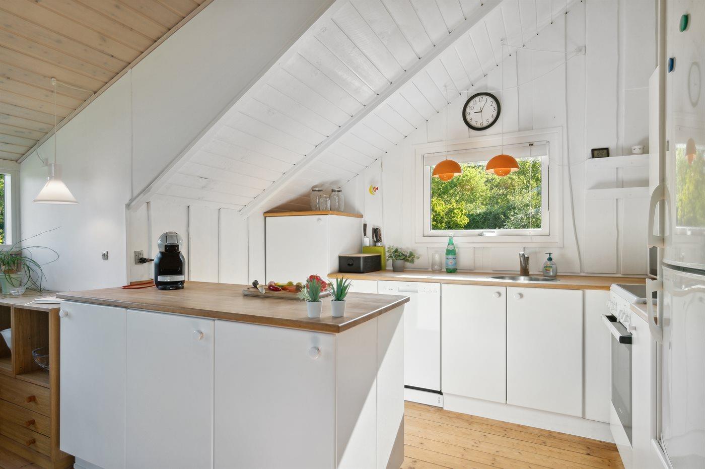 Køkkenet er udstyret med 1 køleskab. Der er 4 keramiske kogeplader, varmluftovn, mikrobølgeovn samt opvaskemaskine.