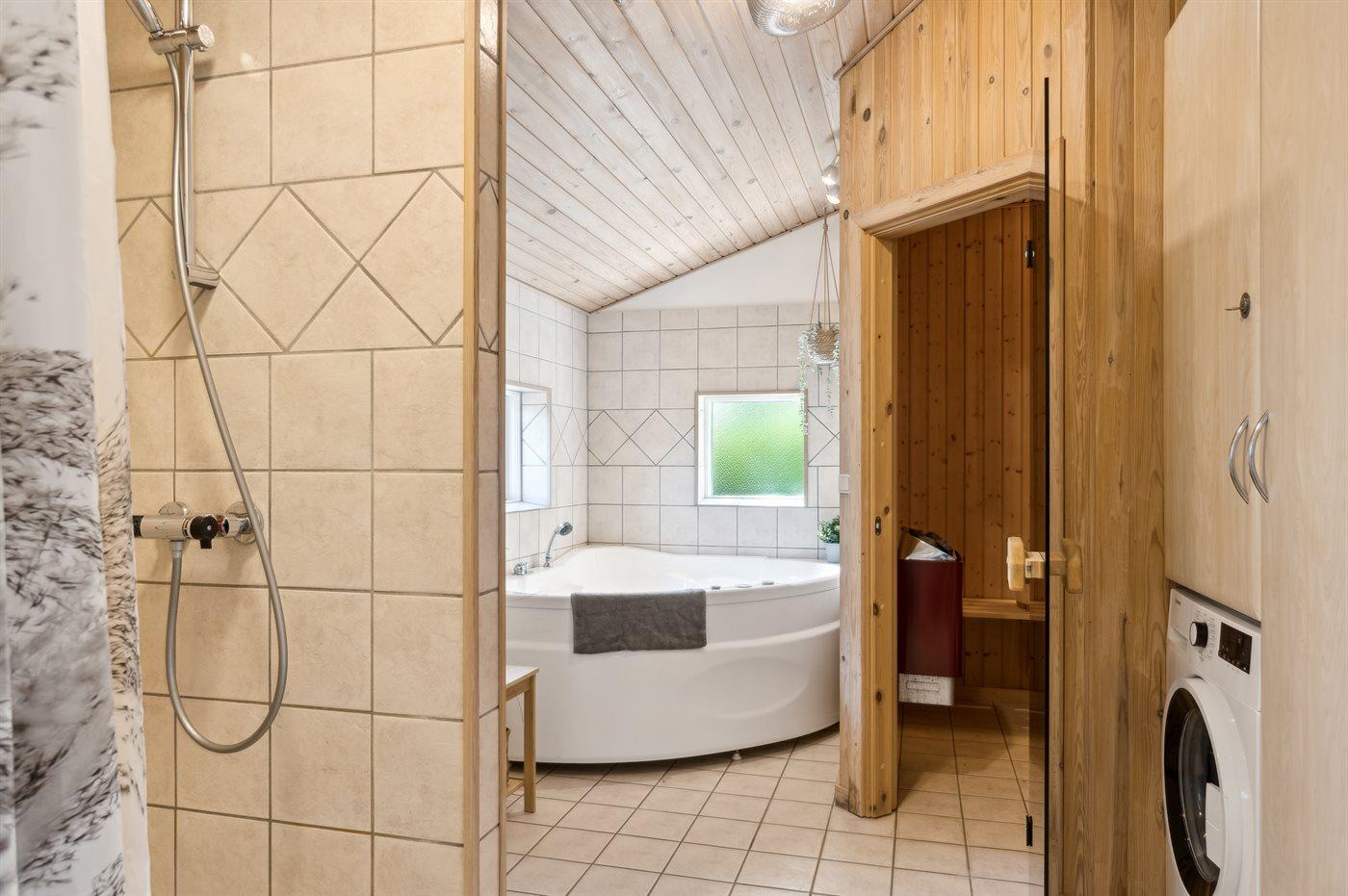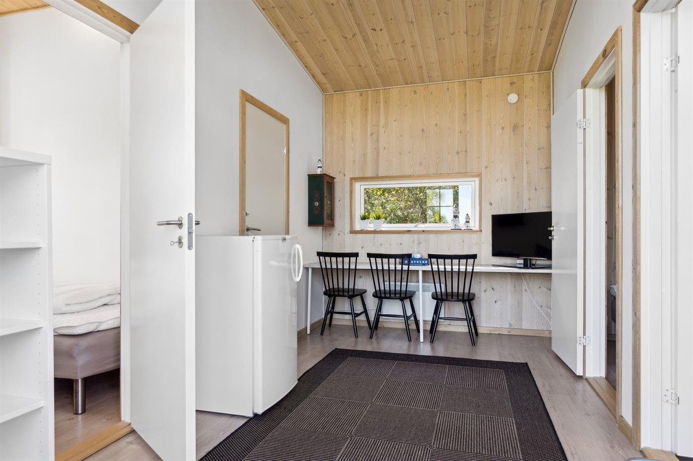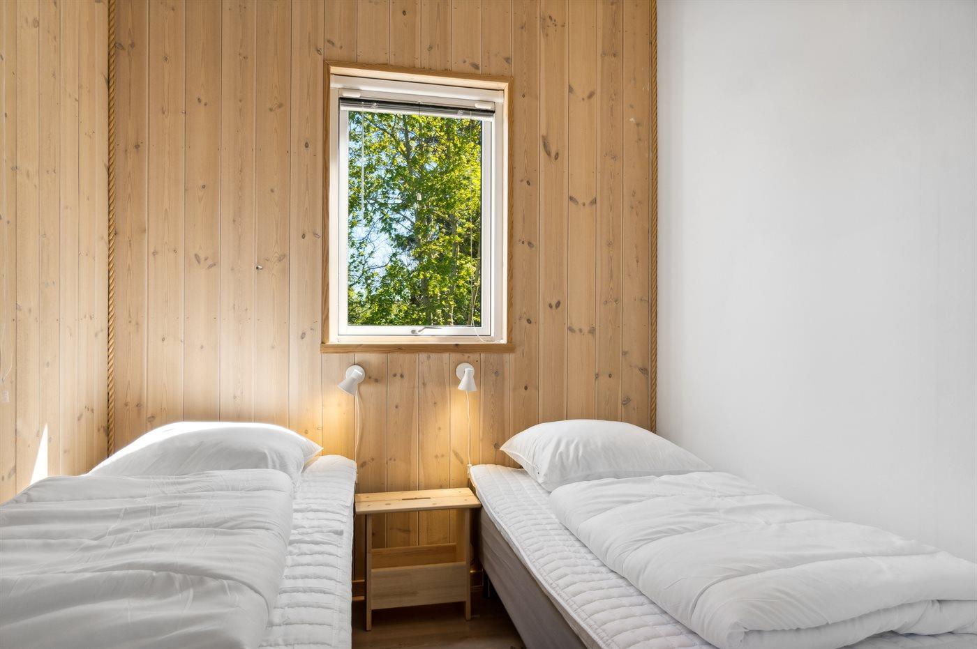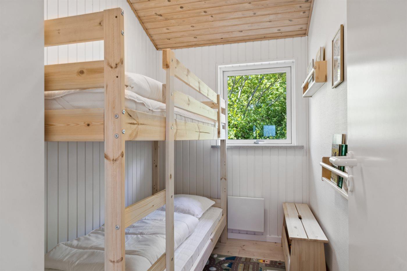 Indretningen byder på tre gode værelser i hovedhuset – to med dobbeltsenge og et med køjeseng. Hertil kommer et rummeligt badeværelse med gulvvarme, sauna og spabad. I annekset findes yderligere to værelser, begge med to enkeltsenge, samt et ekstra badeværelse med gulvvarme, hvilket giver mulighed for privatliv og ro til dele af familien.