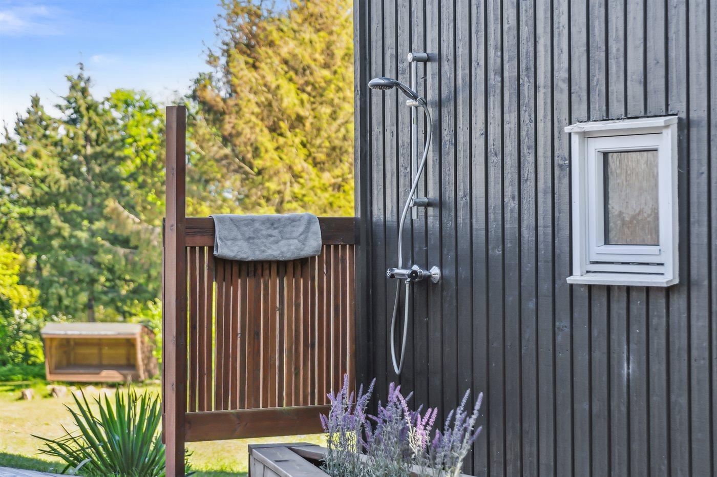 Udendørs er der også tænkt på både komfort og aktiviteter. Der findes en gasgrill samt en kulgrill, så I kan nyde lange sommeraftener med madlavning under åben himmel. En udendørs bruser med både koldt og varmt vand giver mulighed for at skylle sig efter en tur på stranden (bemærk: udebruseren er kun tilgængelig fra forår til efterår). Til børnene er der både en nedgravet trampolin, gyngestativ, en shelter med bålplads samt masser af plads til fri leg. Forbrug i sommerhuset skal I stort set ikke bekymre jer om. Vandforbrug er inklusiv og på sommerhusets tag findes et 2,24 kW solcelleanlæg, som delvist dækker strømforbruget. Derudover er der en ladestander til el-bil (Type 2).). Huset er velegnet til 8 voksne og 2 børn, og der findes både en barnestol samt to juniorstole.