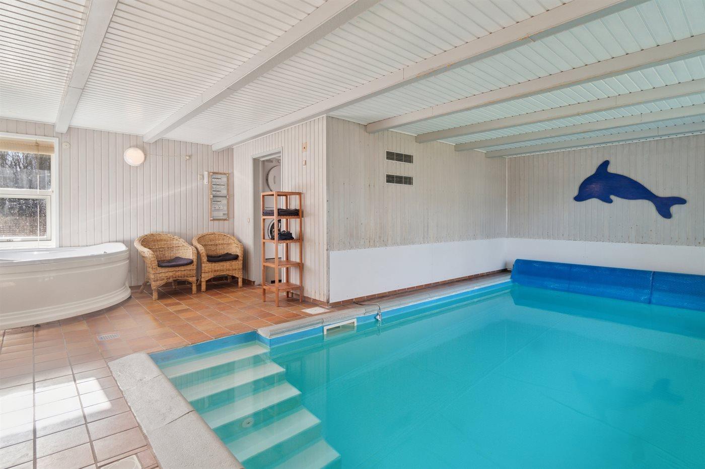 I den indendørs swimmingpool er der mulighed for leg og hyggeligt samvær. Der er gulvvarme i swimmingpoolområdet.