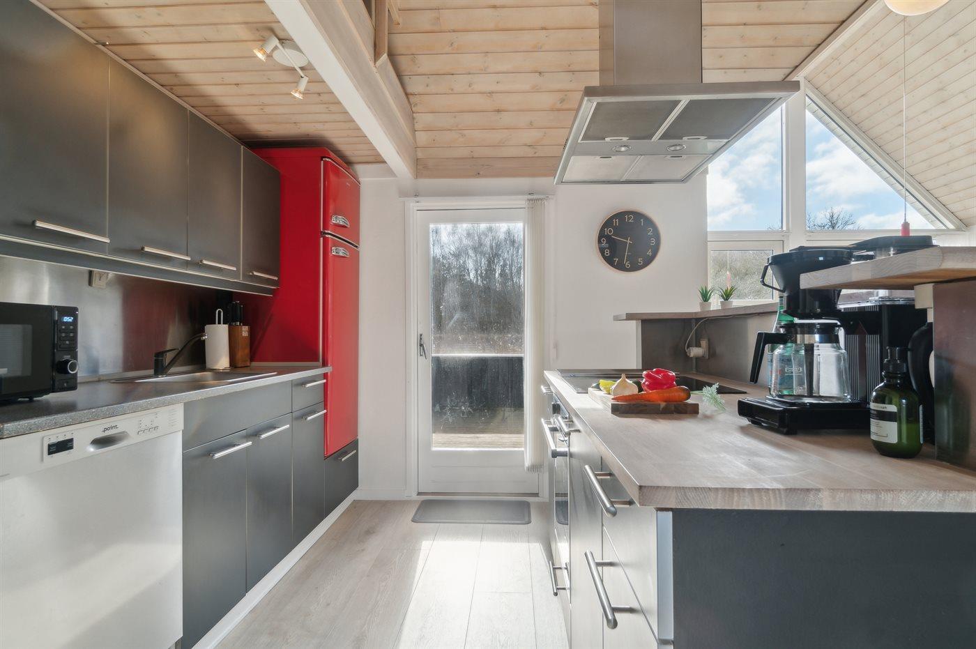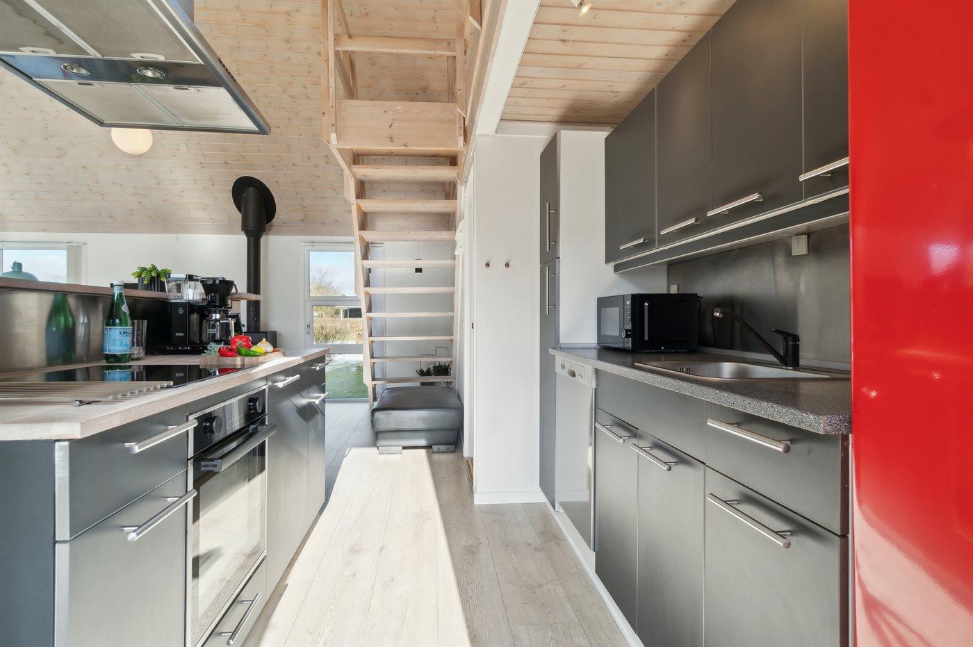 Køkkenet er udstyret med 1 køleskab. Der er 4 keramiske kogeplader, varmluftovn, mikrobølgeovn samt opvaskemaskine.