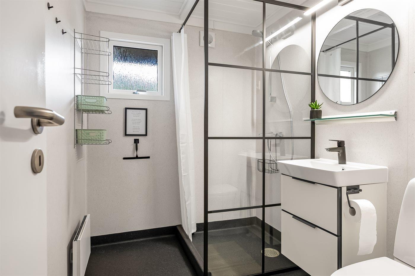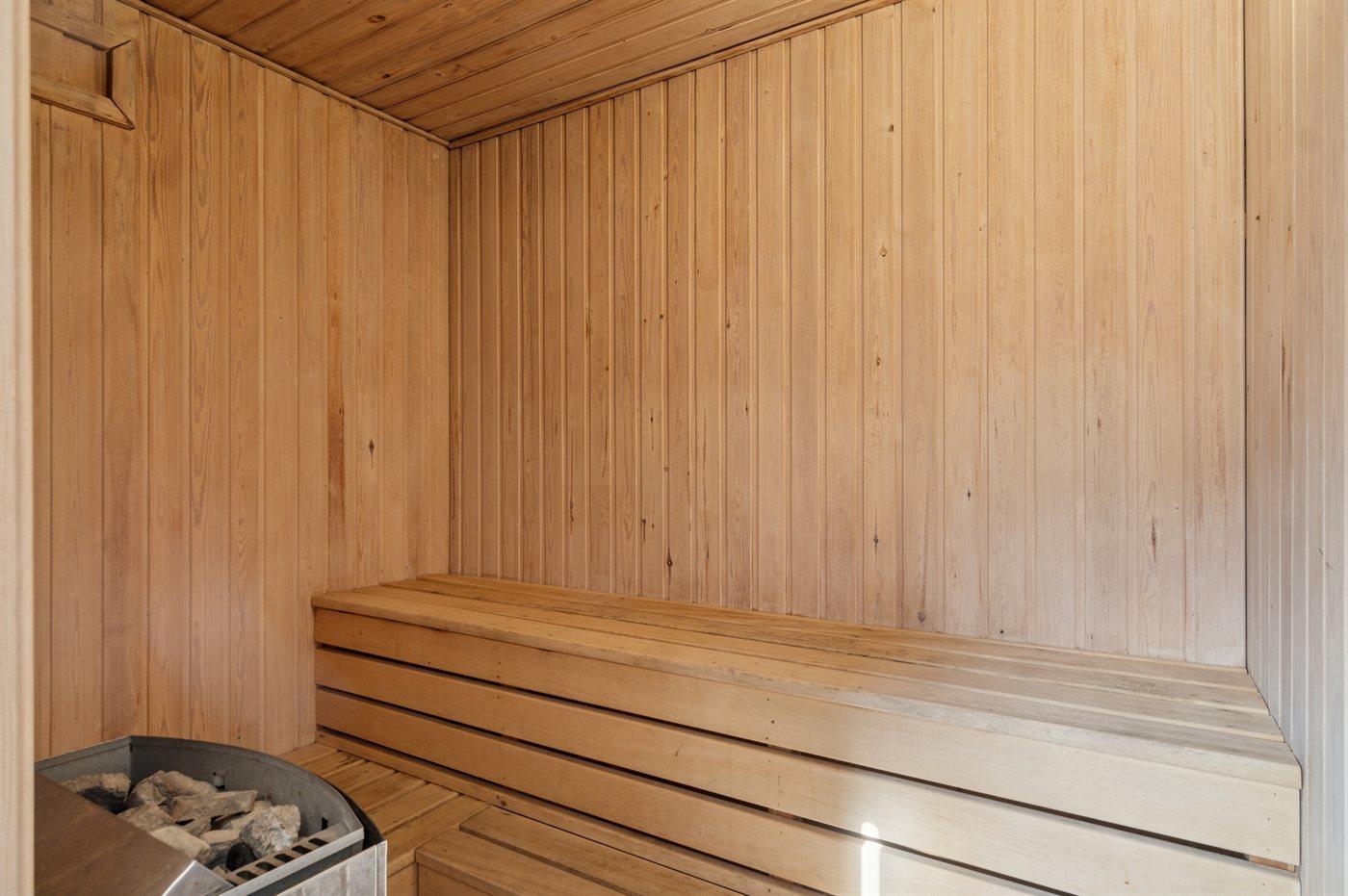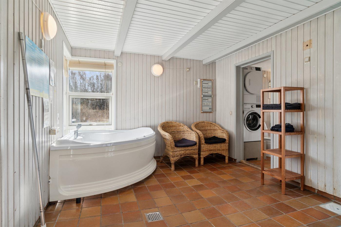 Der er 2 badeværelser med bruseniche og 2 toiletter. Der er gulvvarme på 1 badeværelse. I saunaen er der mulighed for afslapning.