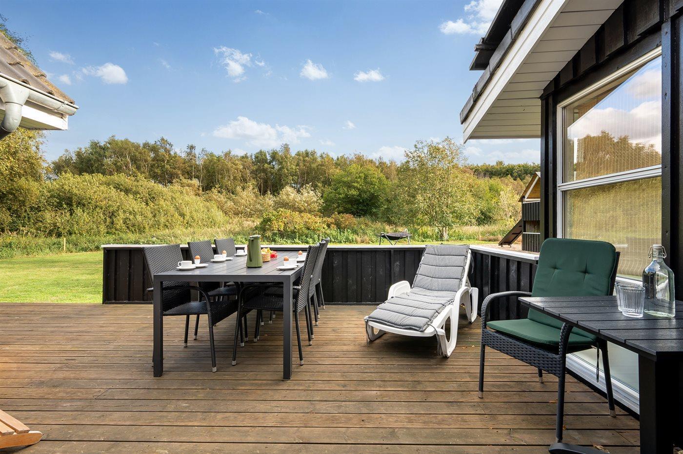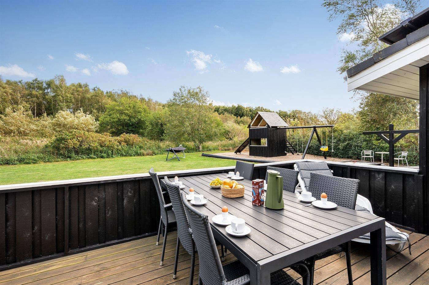 Ved huset findes der skønne terrasser, hvorfra solen og de smukke omgivelser kan nydes. Sommerhuset ligger desuden fuldstændig ugenert og ud imod skoven, hvilket er ganske unikt taget sommerhusets centrale placering i betragtning. Foruden Sommerhusets dejlige swimmingpool findes der også både spa og sauna.