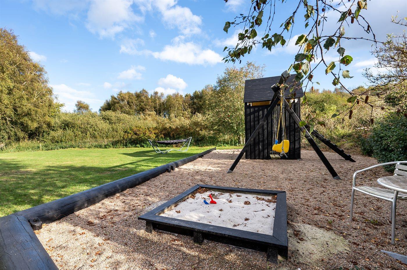 Ferieboligen er beliggende på en 1456 m² stor havegrund. Der er 300 m til havet. Nærmeste forretning er beliggende i en afstand af 200 m. Til ferieboligen hører åbent terrasseareal. Gynge. Sandkasse. Legetårn. Grill til rådighed. Der er carport til rådighed. Parkering ved ferieboligen.