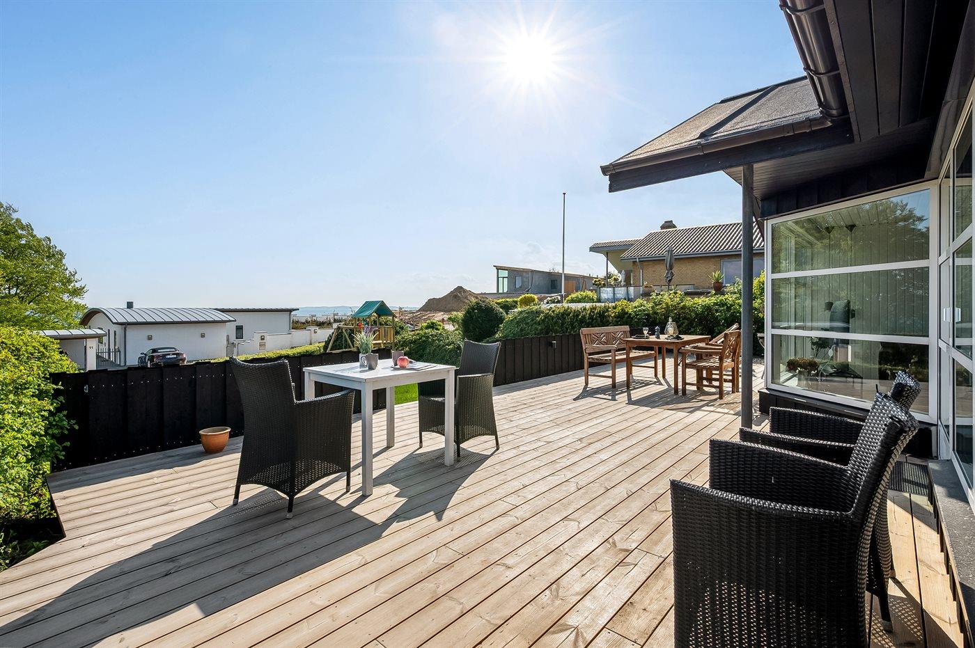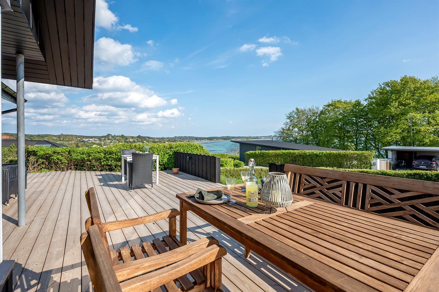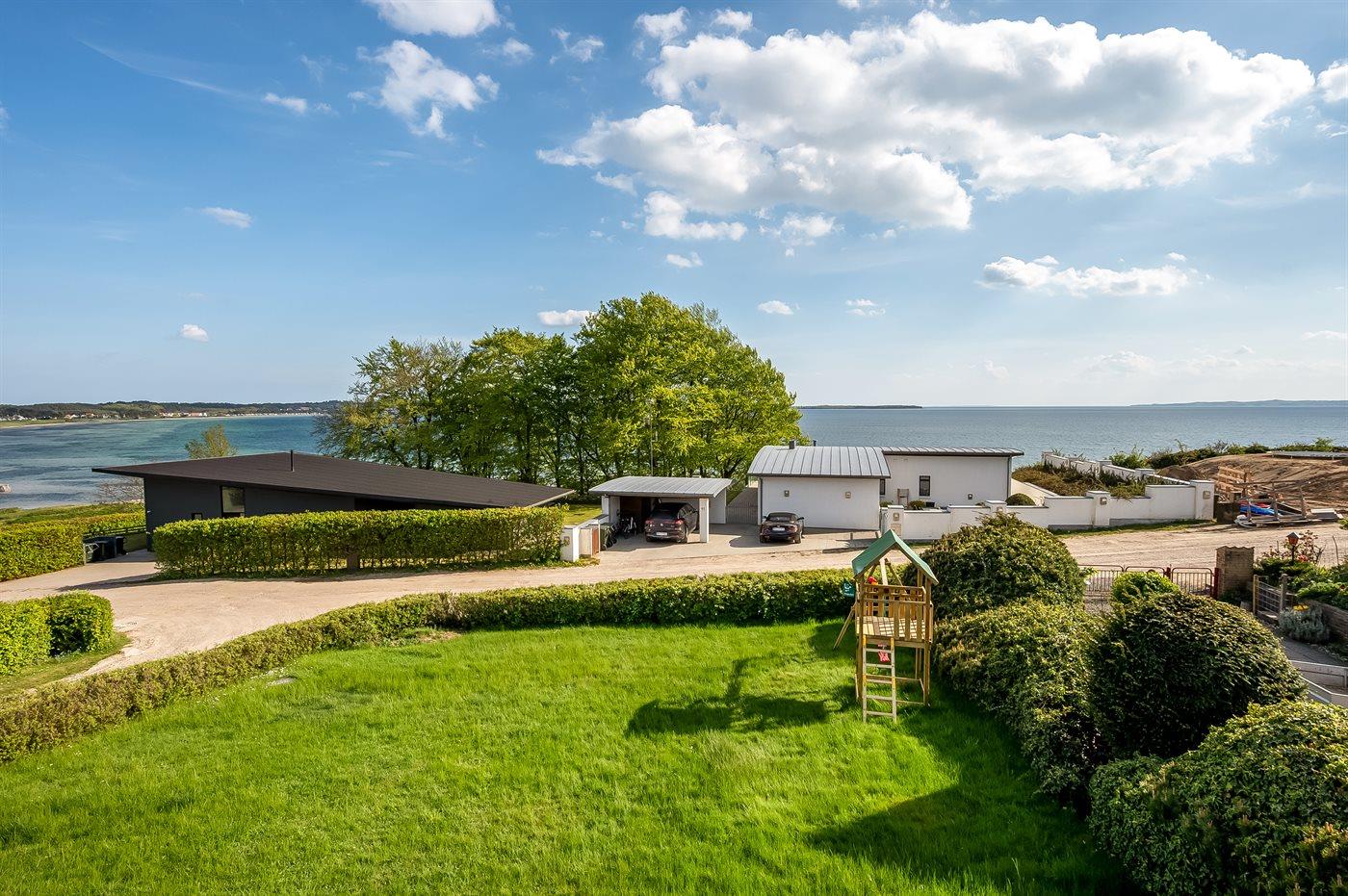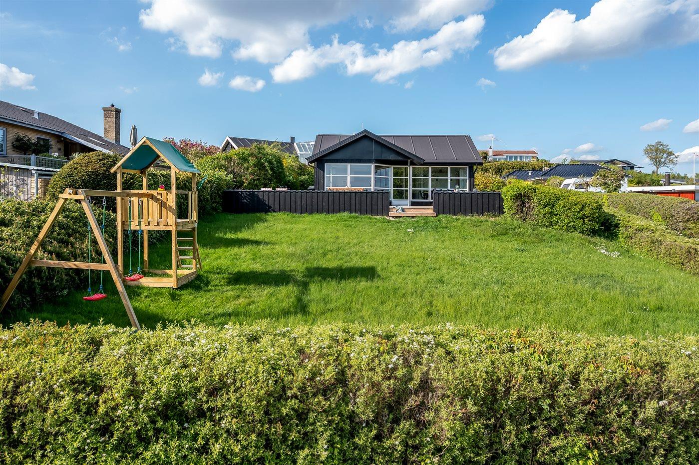 Totalrenoveret sommerhus i Ebeltoft med havudsigt, sauna og stor have, perfekt til familieferie ved vandet.
