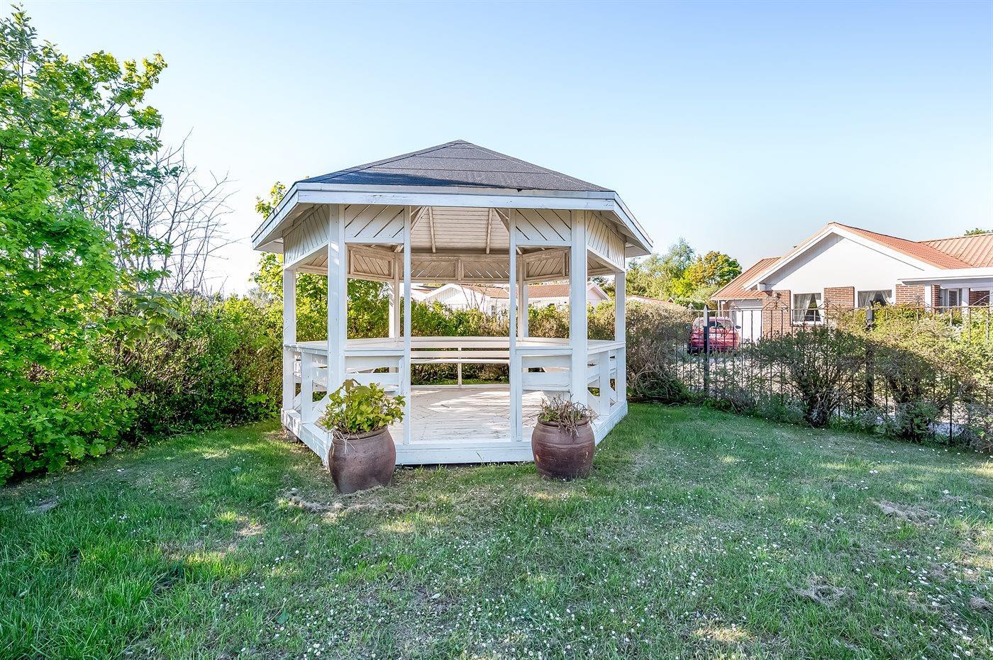 Ferieboligen er beliggende på en 1085 m² stor naturgrund. Grunden er indhegnet. Der er 300 m til havet. Nærmeste forretning er beliggende i en afstand af 900 m. Til ferieboligen hører åbent terrasseareal. Sandkasse. Grill til rådighed. Parkering ved ferieboligen.