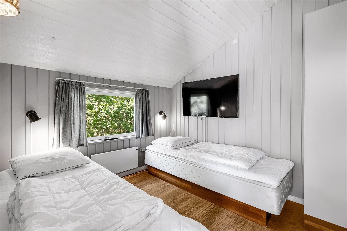 Der er i alt 4 soveværelser. Sovepladserne fordeler sig på: 6 sovepladser i dobbeltsenge. 2 sovepladser i enkeltsenge. Derudover er der 1 stk. barneseng.