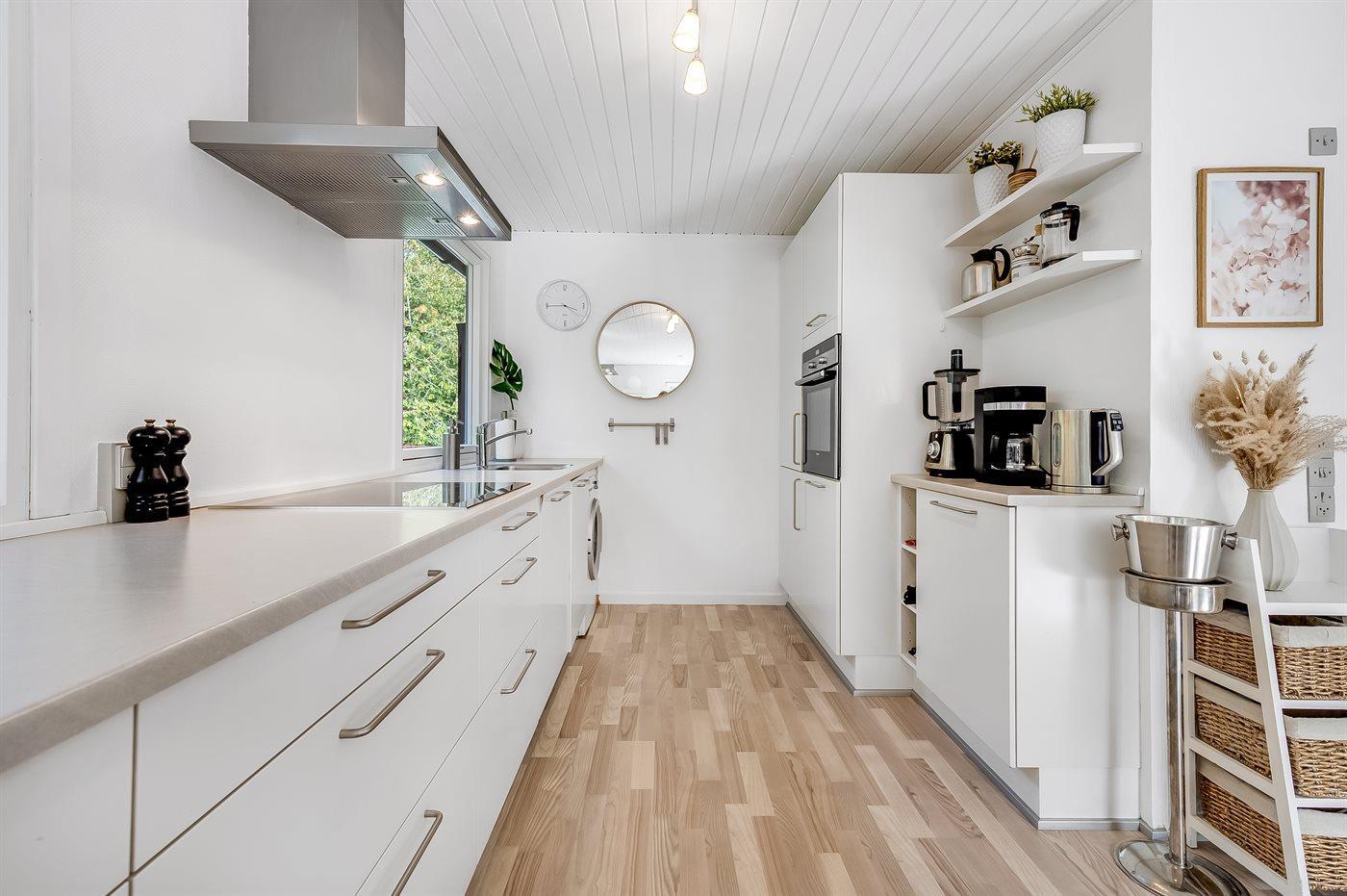 Køkkenet er udstyret med 1 køleskab. Der er 4 induktionskogeplader, varmluftovn, mikrobølgeovn samt opvaskemaskine.