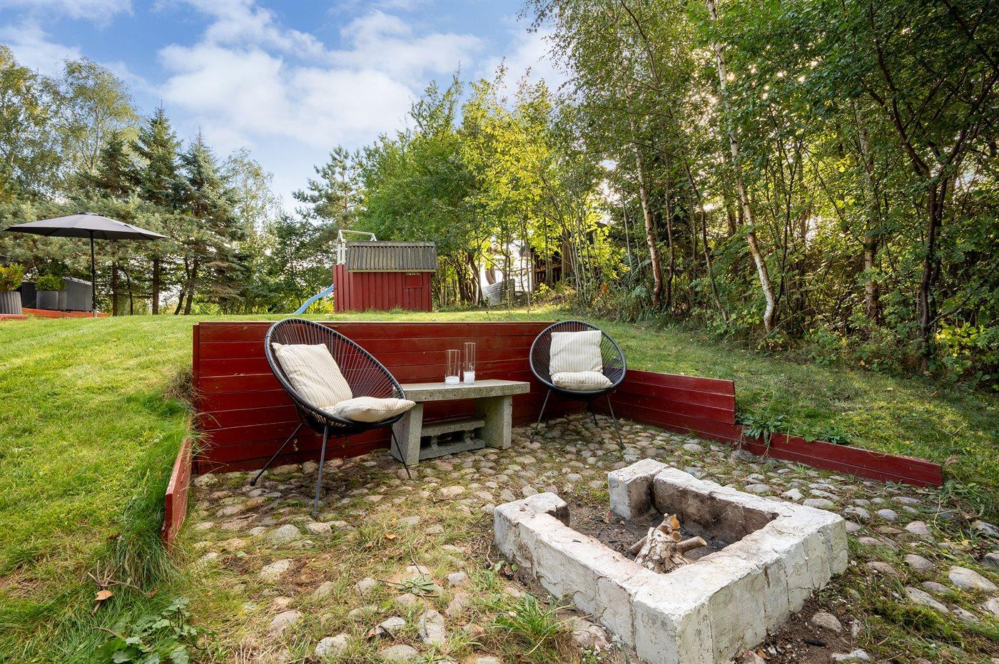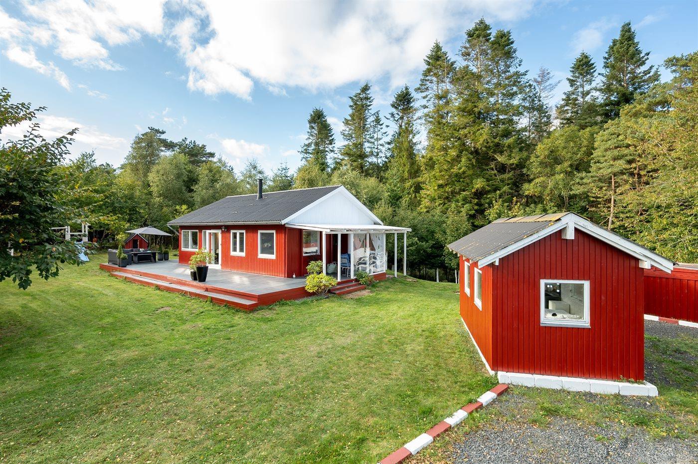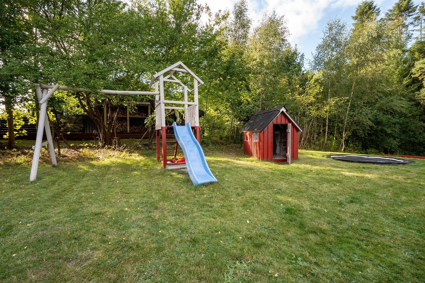 Ferieboligen er beliggende på en 1200 m² stor naturgrund. Der er 925 m til havet. Der er en sø i en afstand af 20 m. Nærmeste forretning er beliggende i en afstand af 2000 m. Til ferieboligen hører åbent terrasseareal. Desuden er der overdækket terrasse. Der er redskabsrum. Gynge. Sandkasse. Legehus. Trampolin. Legetårn. Rutchebane. Bålsted. Shelter. Grill til rådighed. Parkering ved ferieboligen.