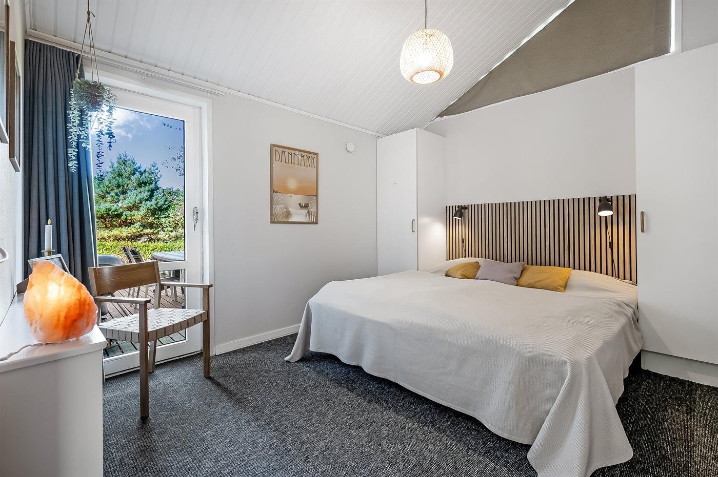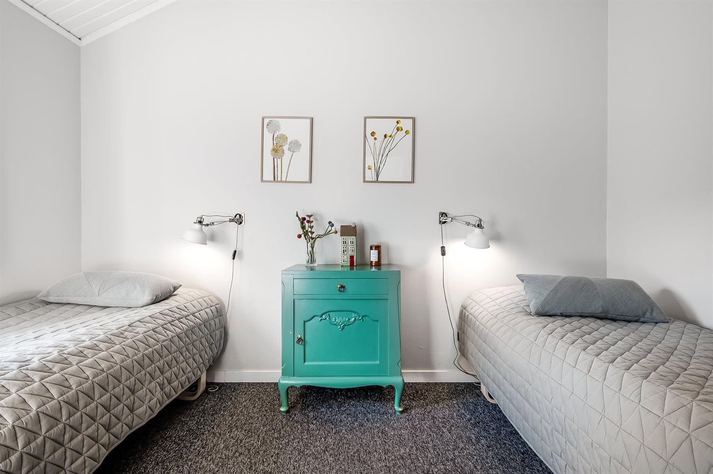 Der er i alt 3 soveværelser. Sovepladserne fordeler sig på: 4 sovepladser i dobbeltsenge. 2 sovepladser i enkeltsenge. Derudover er der 1 stk. barneseng.