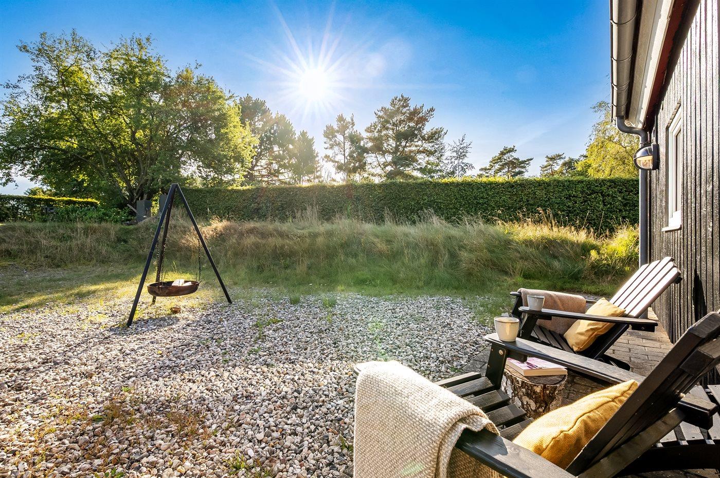 Ferieboligen er beliggende på en 1200 m² stor naturgrund. Der er 600 m til havet. Nærmeste forretning er beliggende i en afstand af 900 m. Til ferieboligen hører 40 m² terrasseareal. Heraf i alt 30 m² lukket terrasse. Der er redskabsrum. Gynge. Sandkasse. Parkering ved ferieboligen.