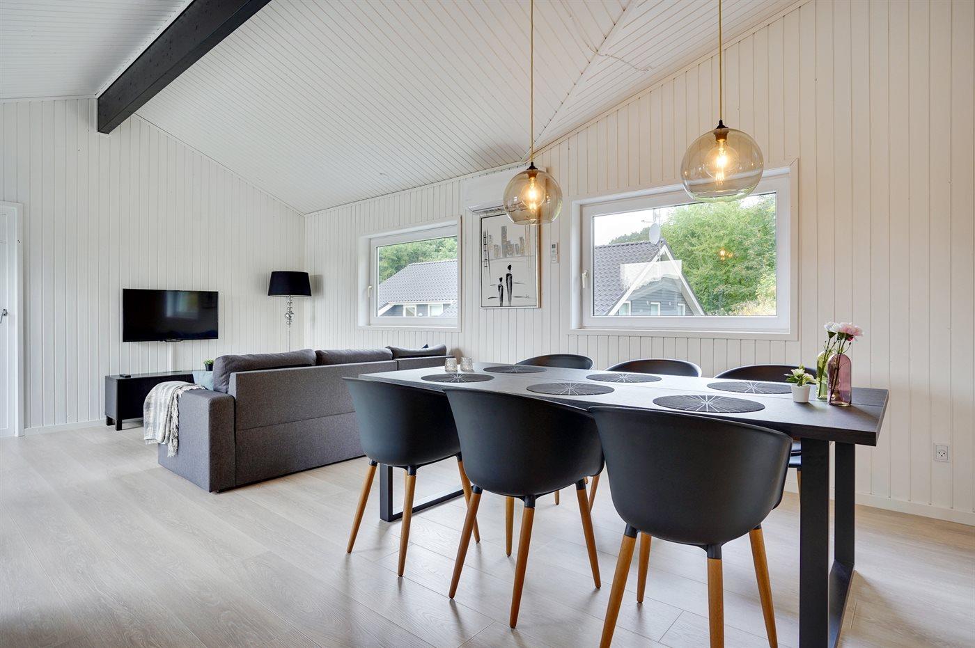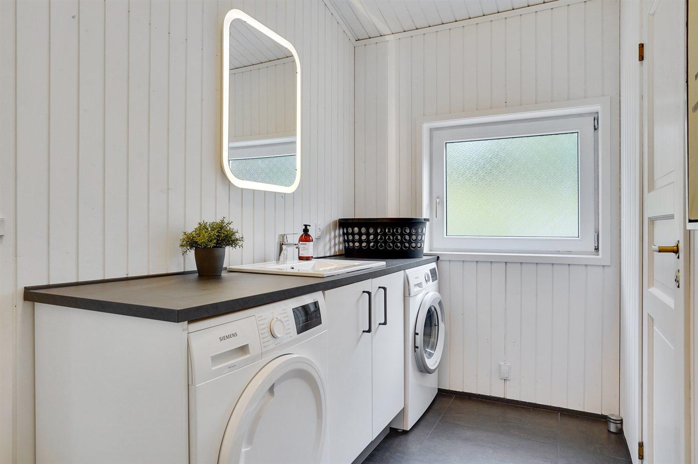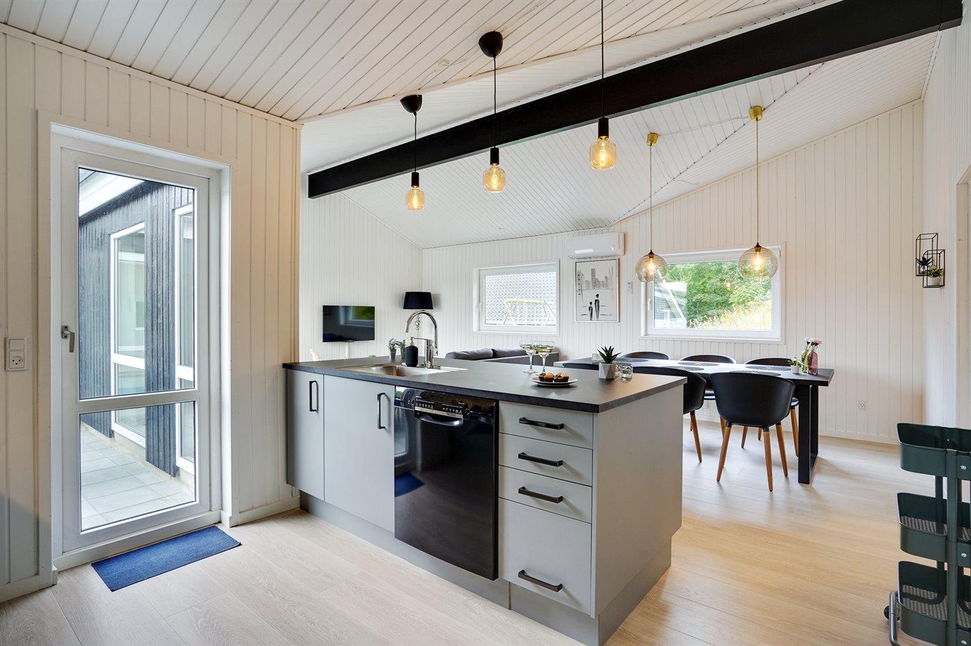 Køkkenet er udstyret med 1 køleskab. Der er 4 keramiske kogeplader, varmluftovn samt opvaskemaskine.
