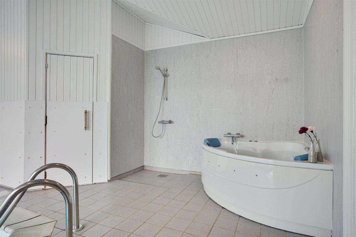 Der er 1 badeværelse med bruseniche og 1 toilet.. Der er gulvvarme på 1 badeværelse. I saunaen er der mulighed for afslapning.