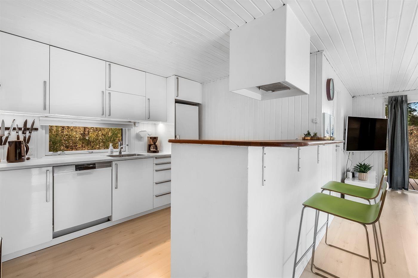 Køkkenet er udstyret med 1 køleskab. Der er 4 induktionskogeplader, varmluftovn, mikrobølgeovn samt opvaskemaskine.